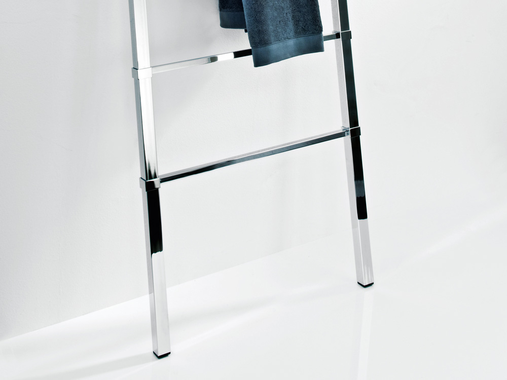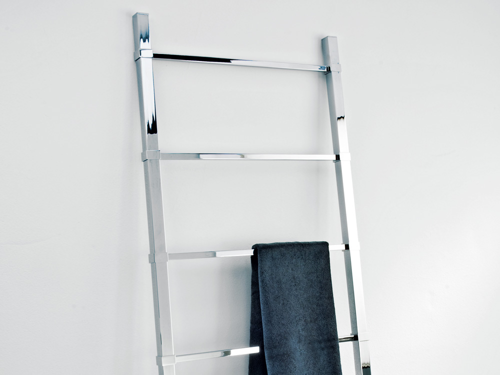 Elegancki przyścienny stojak na ręczniki w kształcie drabinki wykonany z wysokiej jakości chromowanego mosiądzu.