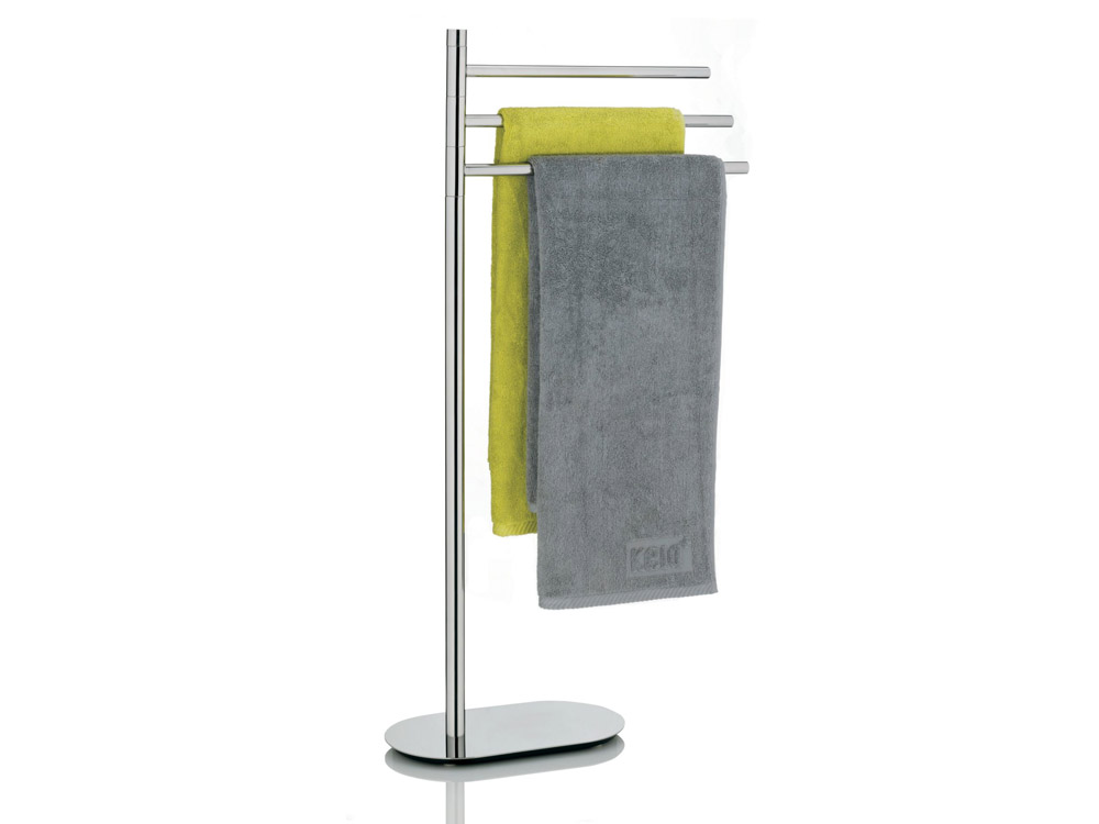 Stojak Lucido to elegancki podłogowy stojak na ręczniki wykonany z polerowanej stali nierdzewnej z 3-poziomowym ramieniem z ruchomymi obrotowymi, funkcyjnymi poprzeczkami. Stojak posiada obciążoną owalną podstawę zapewniającą stabilność stojaka. Jest to bardzo praktyczny, ale również oryginalny pod względem wizualnym element wystroju łazienki.