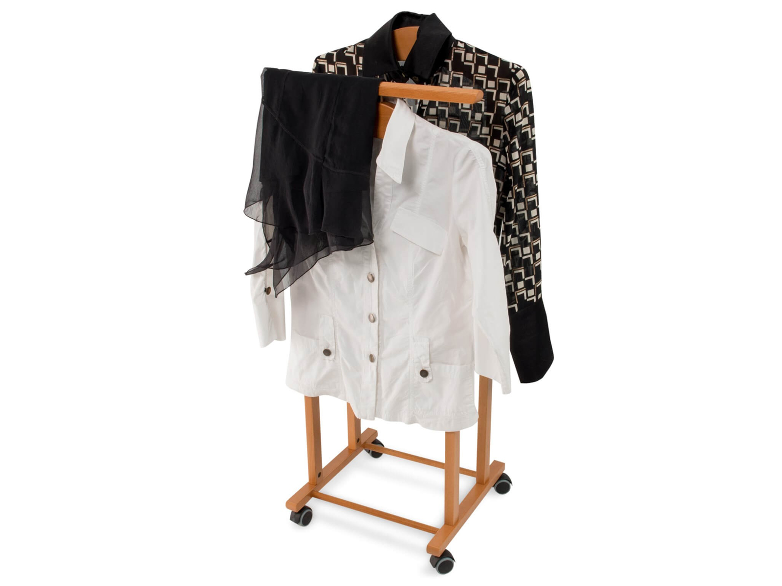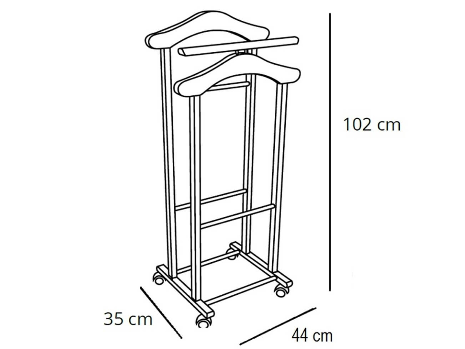 Drewniane stojaki Arredamenti są eleganckimi elementami wyposażenia, które dbają o nienaganny, wyjściowy wygląd ubrań, butów i garniturów. Stojak Trendy wykonany z litego drewna bukowego zapewnia wysoką stabilność i trwałość. Wyposażony w 2 wyprofilowane wieszaki na koszule lub marynarki oraz uchwyt na spodnie, ułatwia codzienną organizację garderoby. Sama podstawa stojaka może posłużyć jako miejsce dla butów. Gumowe kółka umożliwiają swobodne przemieszczanie akcesorium pomiędzy pomieszczeniami. Wszystko to we włoskim stylu o naturalnym, drewnianym charakterze.