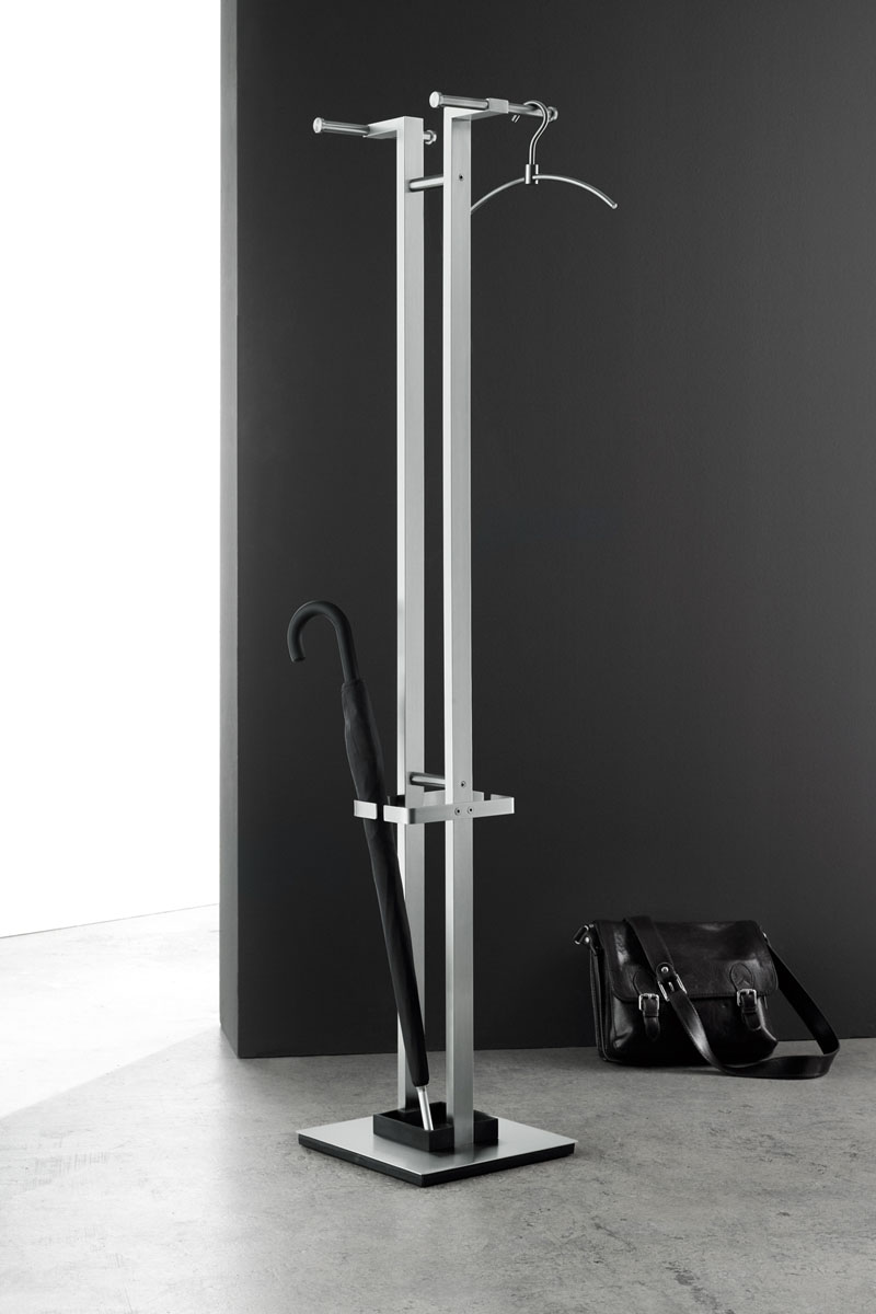 Zack Aracio to bardzo elegancki i niezwykle praktyczny wysoki wolnostojący stojak/wieszak podłogowy na okrycia wierzchnie. Stojak wykonany z najwyższej jakości stali nierdzewnej 10/18 w matowym wykończeniu.