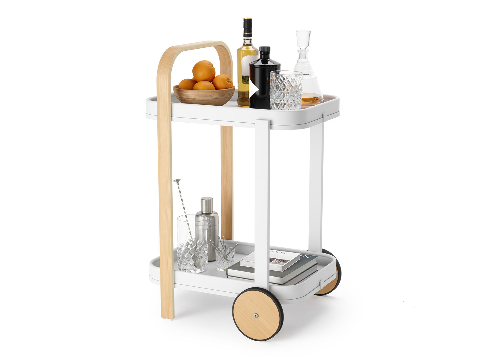 Oryginalny i funkcjonalny drewniano-metalowy mobilny stolik do serwowania/ wózek barowy Bellwood Bar and Serving Cart.