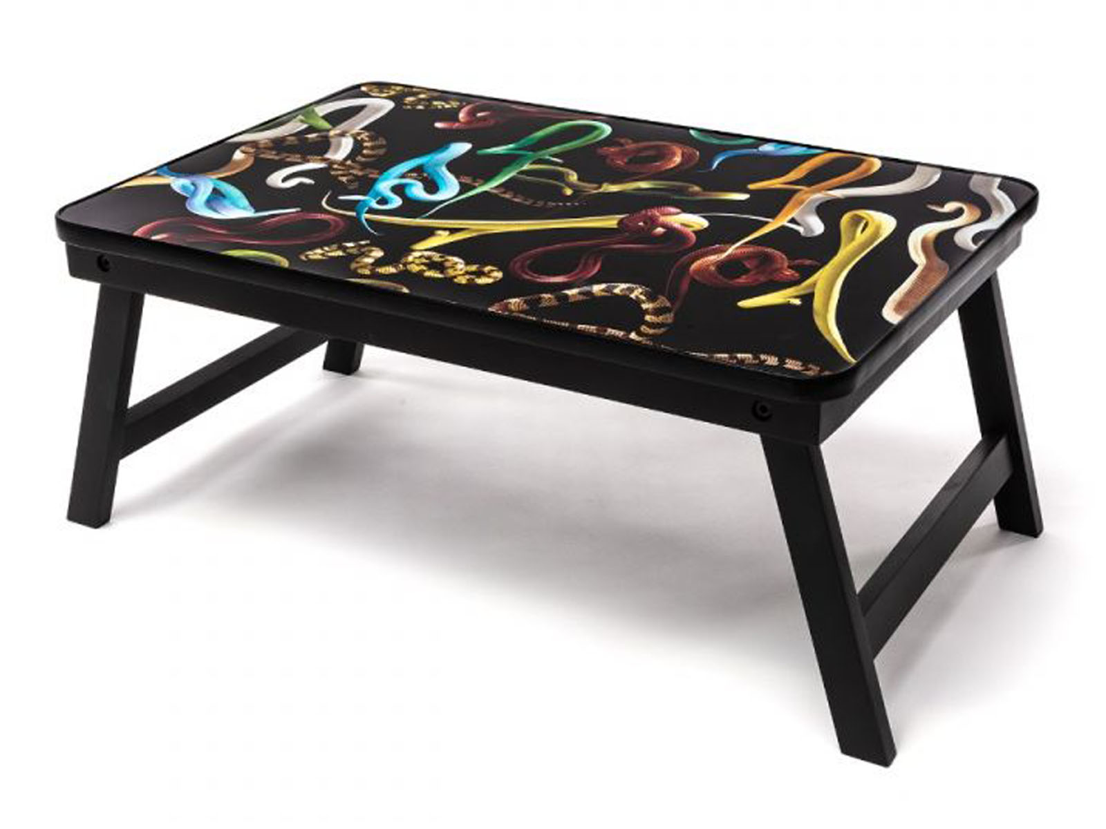 To bardzo praktyczny, oryginalny i funkcjonalny składany stolik śniadaniowy do serwowania. Stolik posiada składane nogi, po złożeniu których stolik staje się praktyczną tacą do serwowania.