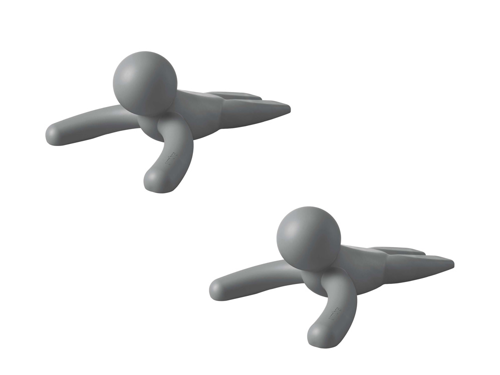 Zestaw 2–óch oryginalnych i jednocześnie funkcjonalnych ograniczników do drzwi w kształcie leżących na brzuchu "ludzików".