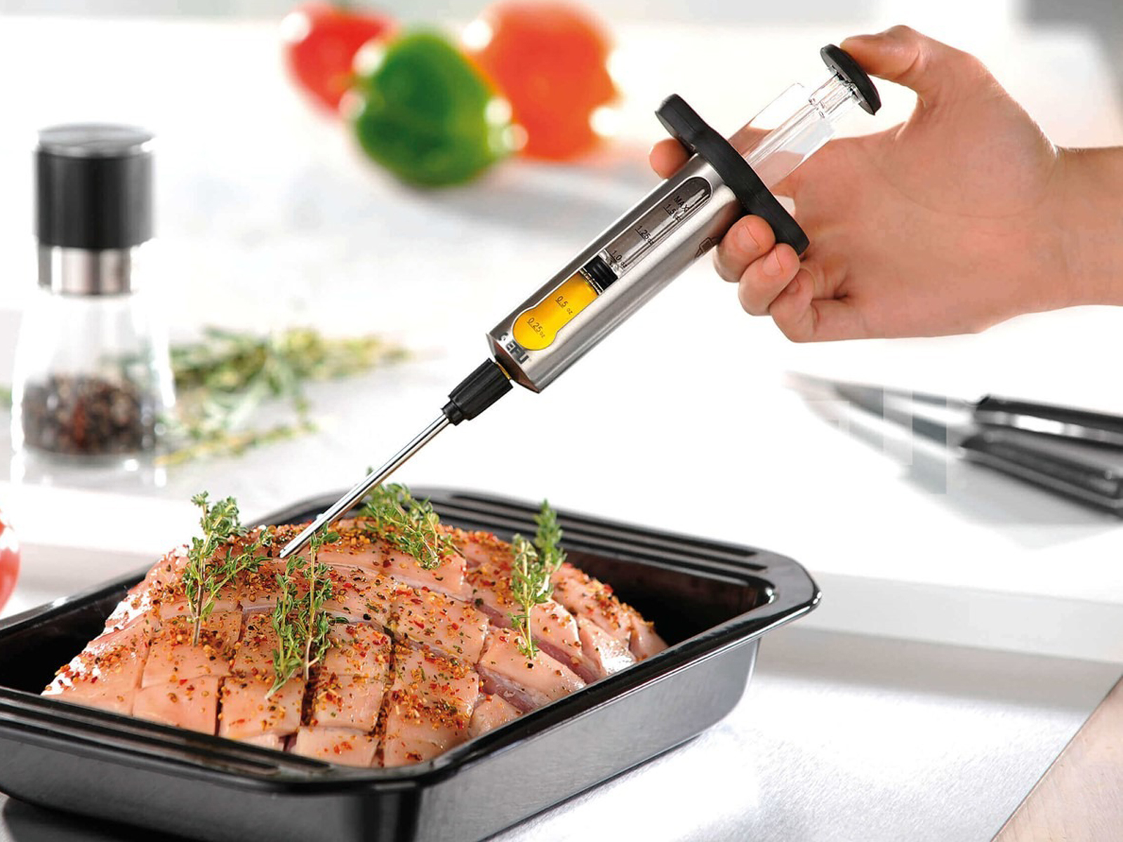 Ze strzykawką GEFU BBQ nawet niewielki kawałek mięsa stanie się smakowitym kąskiem wypełnionym aromatami.