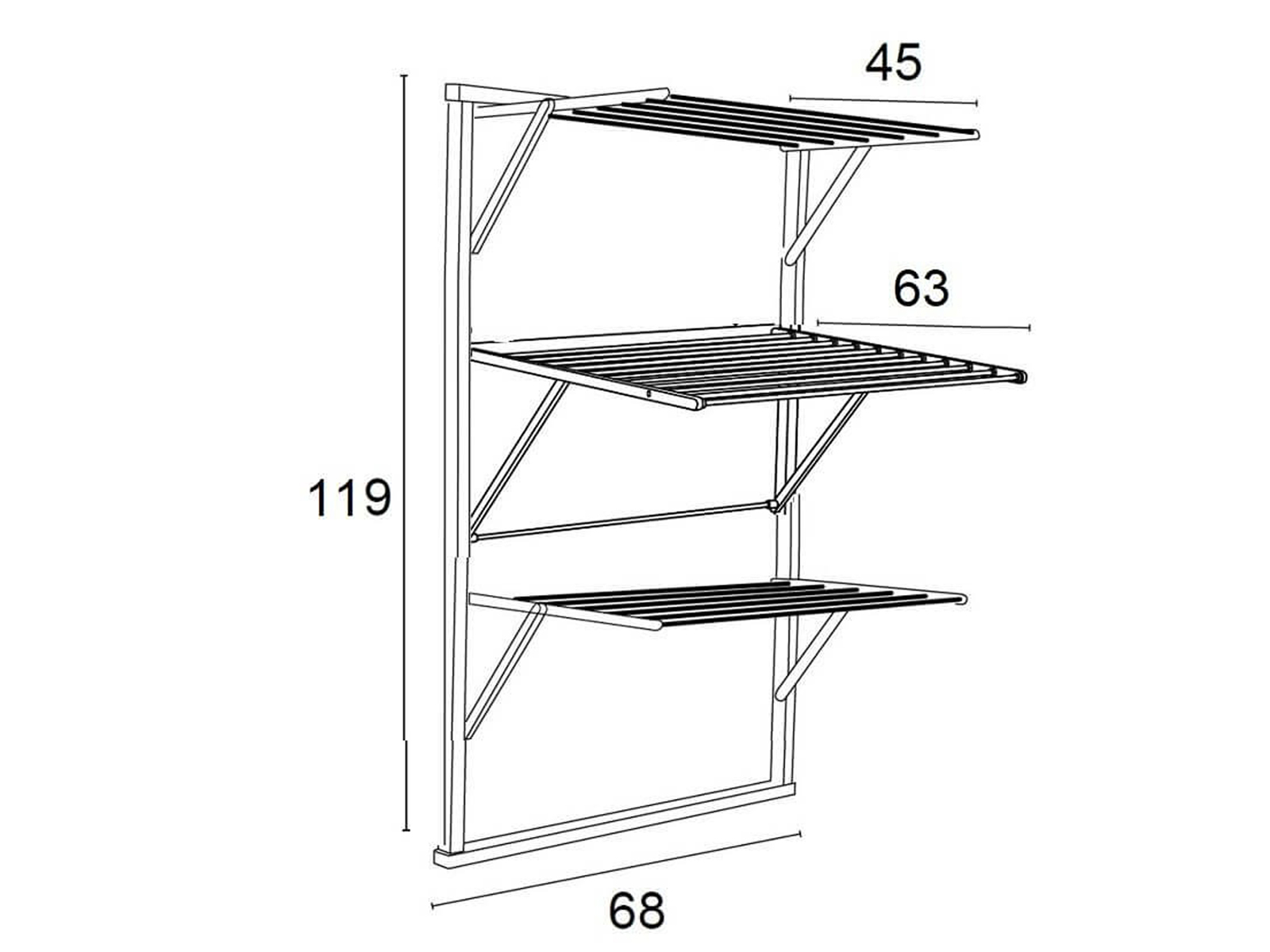 Po złożeniu: 68 cm x 6 cm x 119 cm