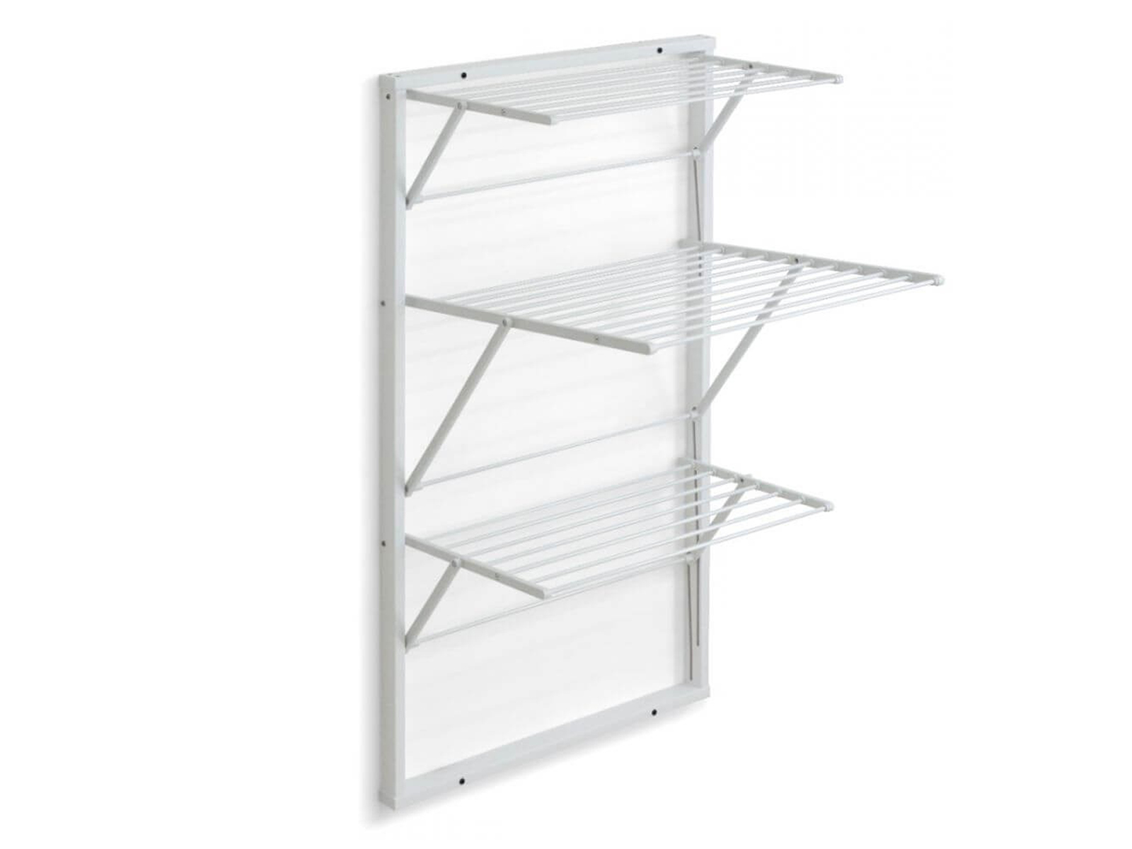 Naścienne i podłogowe suszarki Arredamenti oferują ciekawe rozwiązania w suszeniu prania dzięki pomysłowym, drewnianym konstrukcjom. Suszarka Karim została zaprojektowana z myślą o maksymalnej wygodzie i oszczędności miejsca – posiada 15 metrów powierzchni do wykorzystania nad ziemią. Prosty montaż na ścianie z użyciem 4 dołączonych kołków pozwala cieszyć się cenną przestrzenią w pralni lub łazience. Trzy niezależne poziomy składające się z drutów powlekanych aluminium są łatwe w składaniu, lekkie i trwałe.