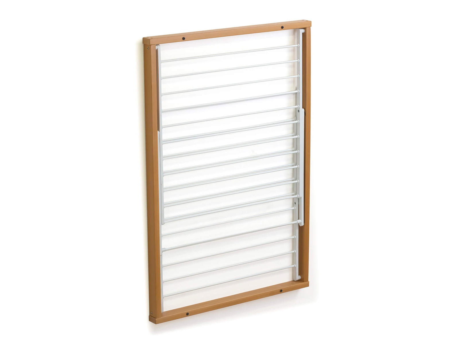 Naścienne i podłogowe suszarki Arredamenti oferują ciekawe rozwiązania w suszeniu prania dzięki pomysłowym, drewnianym konstrukcjom. Suszarka Koral została zaprojektowana z myślą o maksymalnej wygodzie i oszczędności miejsca – posiada 13 metrów powierzchni do wykorzystania nad ziemią. Prosty montaż na ścianie z użyciem 4 dołączonych kołków pozwala cieszyć się cenną przestrzenią w pralni lub łazience. Dwa niezależne poziomy składające się z drutów powlekanych aluminium są łatwe w składaniu, lekkie i trwałe. Jeden poziom otwiera się od góry, a drugi od dołu.