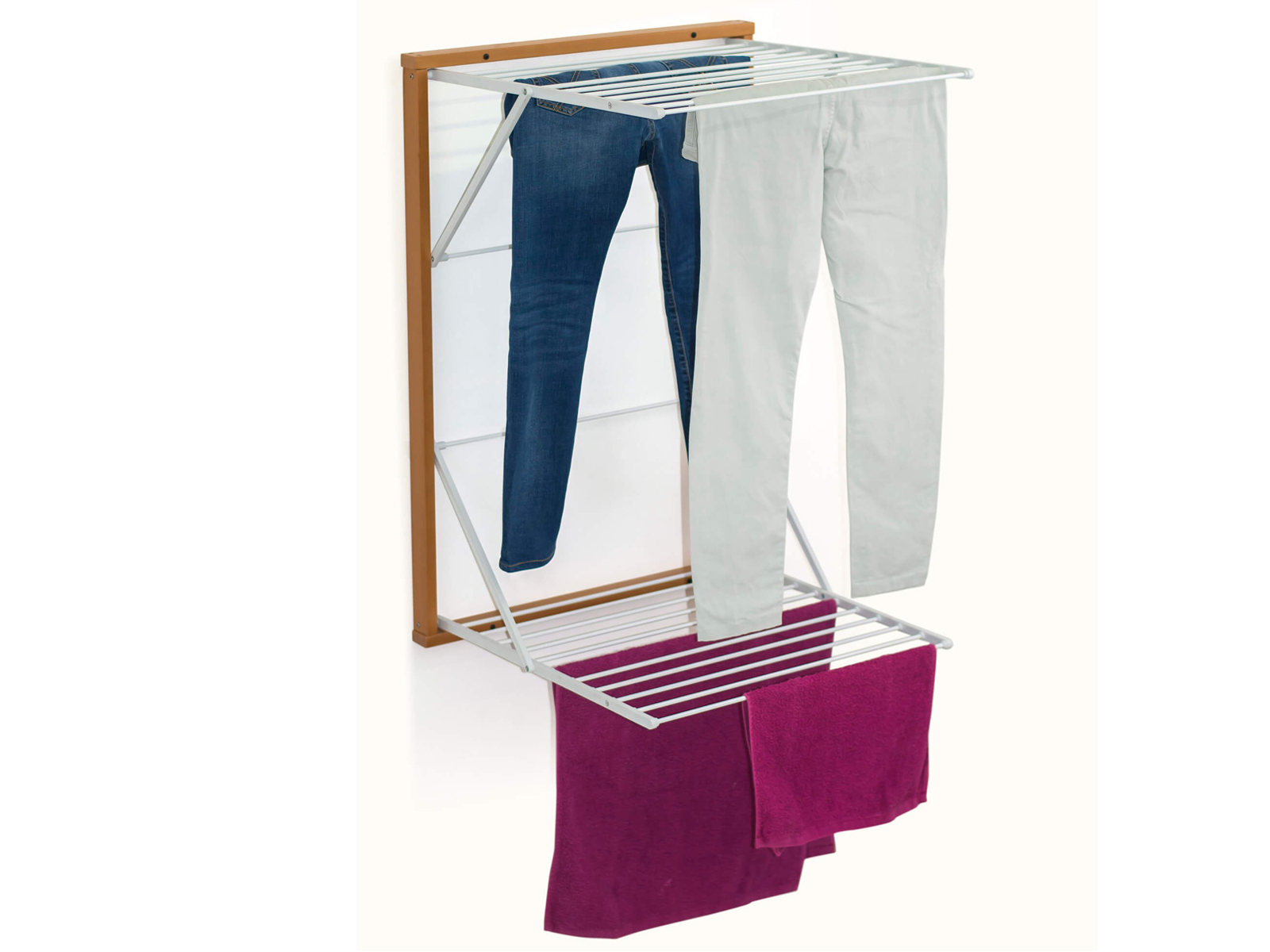 Stylowa i praktyczna suszarka naścienna z drewnianą konstrukcją