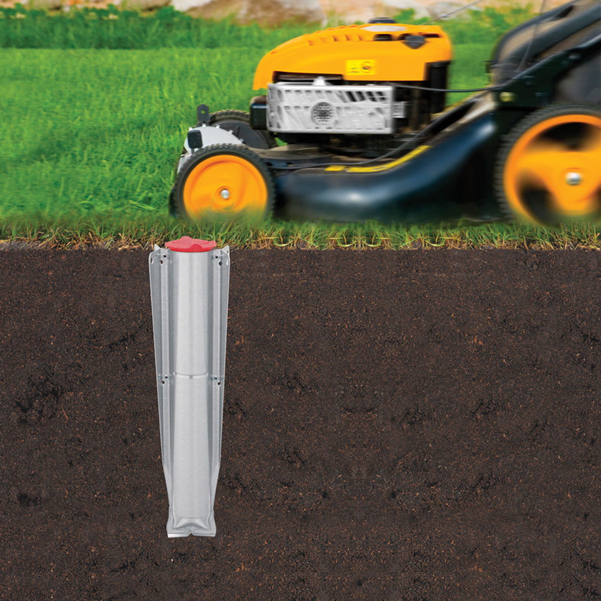 Słupek suszarki mocowany jest w bezpośrednio w gruncie (ziemi) za pomocą dołączonej do zestawu tuleji o średnicy 45 mm - tuleja wykonana ze stali ocynkowanej, posiada nakładkę, która zapobiega gromadzeniu się w niej wody deszczowej i brudu, gdy suszarka nie jest w niej zamocowana np. w zimie.