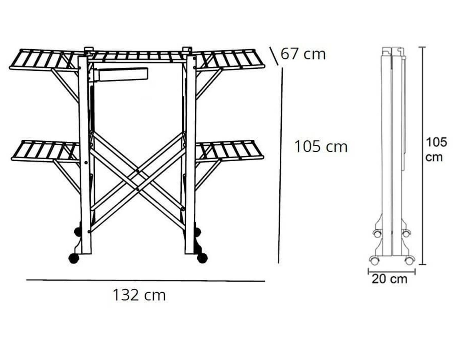 Po rozłożeniu: 132 cm x 67 cm x 105 cm