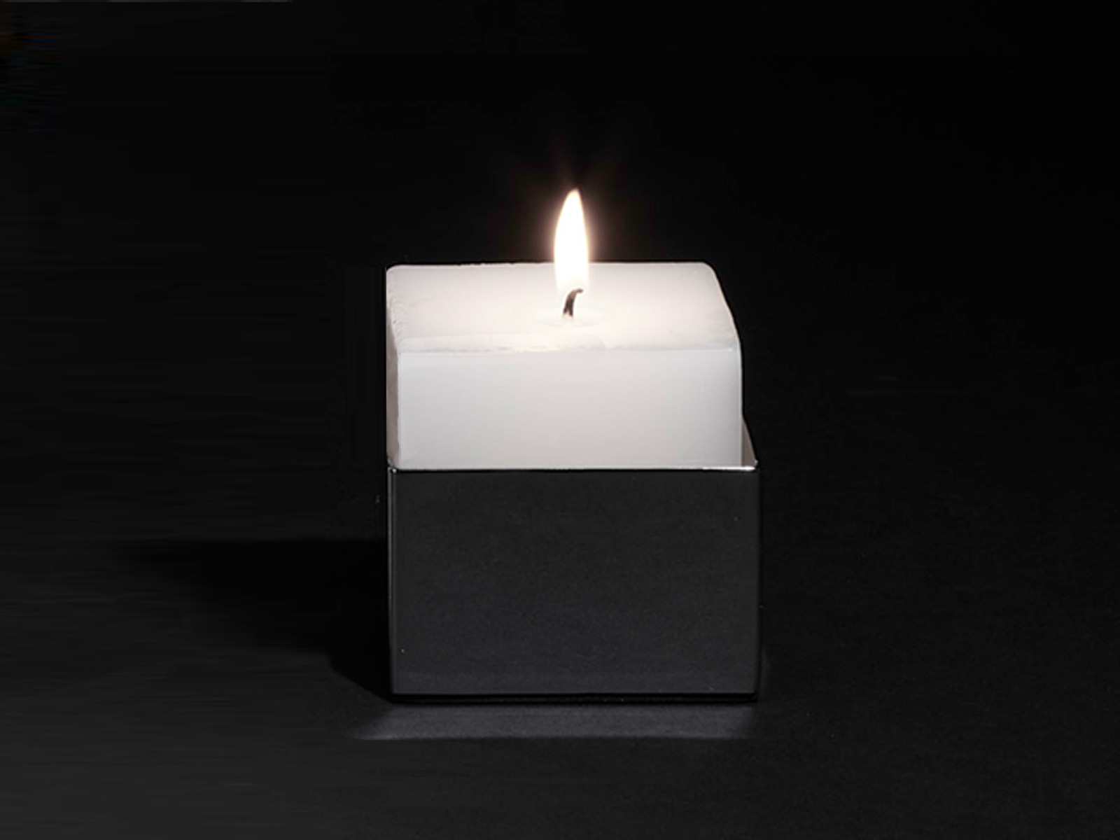 Elegancka parafinowa świeca zapachowa w kształcie sześcianu o wymiarach 7,5 x 7,5 x 7,5 cm.