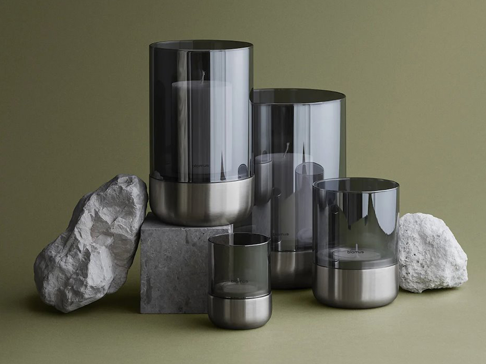 Calma to inspirująca kolekcja świeczników, wyróżniająca się bogatą paletą barw oraz różnorodnością materiałów. W zależności od wybranego wariantu cylinder wykonany jest ze szkła przezroczystego bądź dymnego. Z kolei podstawa stworzona jest z betonu, żywicy poliestrowej lub stali nierdzewnej. Taka kreatywność w łączeniu różnych rozwiązań projektowych pozwala na kreowanie oryginalnych kompozycji świetlnych.