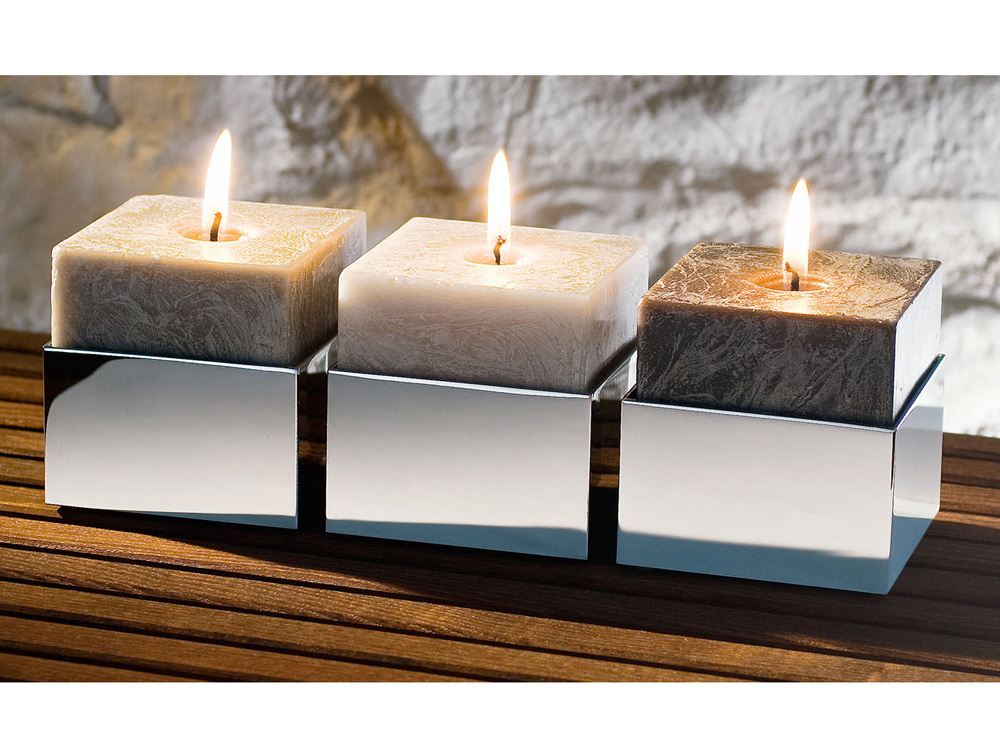 Elegancki kwadratowy nablatowy świecznik z wysokiej jakości chromowanego mosiądzu.