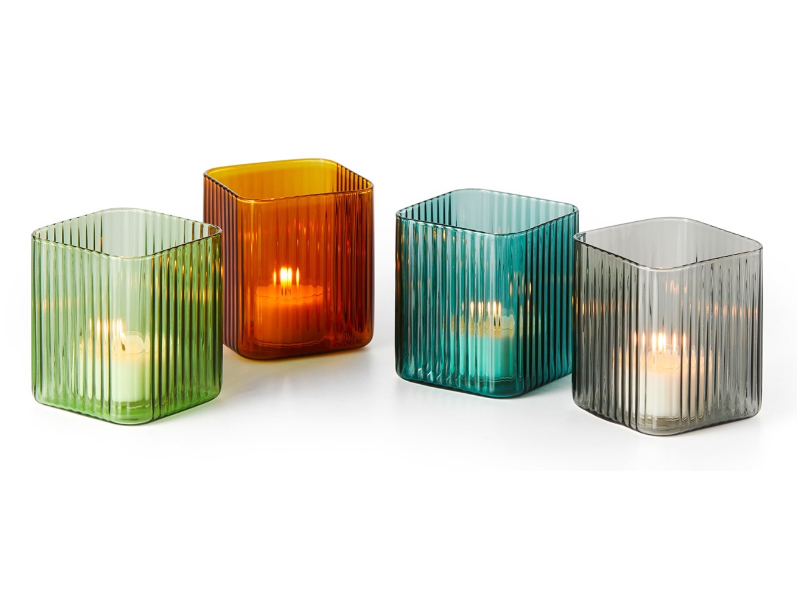 Piękny, ryflowany świecznik z barwionego szkła