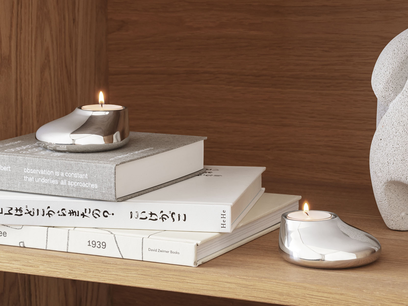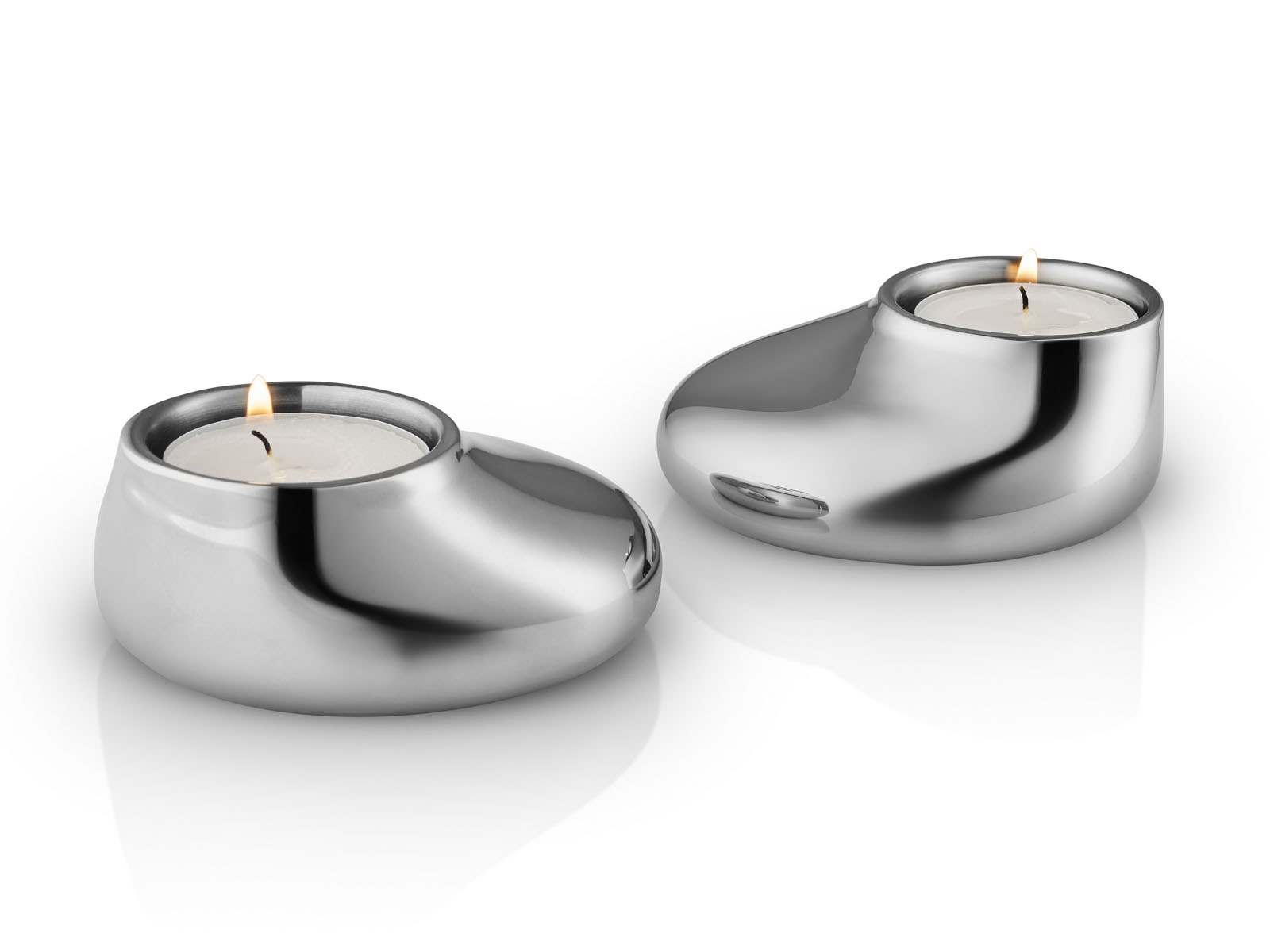 Owalny kształt świeczników inspirowany jest spływającym ze świec rozgrzanym woskiem.