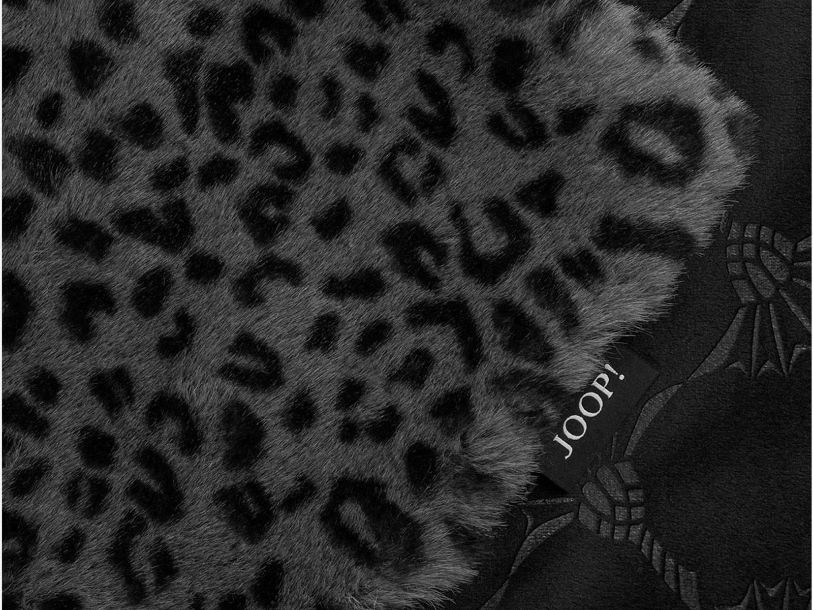 Wierzchnia część koca wykonana jest z wysokogatunkowych mikrowłókien poliestrowych idealnie imitujących naturalne futro zwierzęce, spód zaś z niezwykle delikatnego aksamitnego w dotyku zamszu z wzorem Joop.