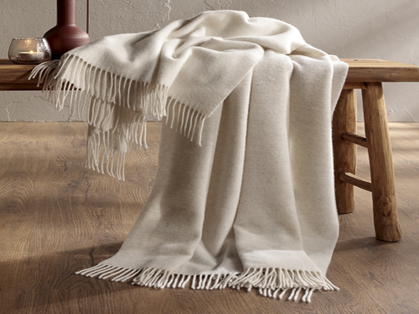 Doskonałej jakości wełniany pled z 20% dodatkiem kaszmiru przeznaczony do okrycia się przez cały rok lub do efektownej dekoracji sypialni lub salonu. Pled zapewnia bardzo wysoki komfort termiczny oraz jest jednocześnie bardzo miły i delikatny w dotyku.