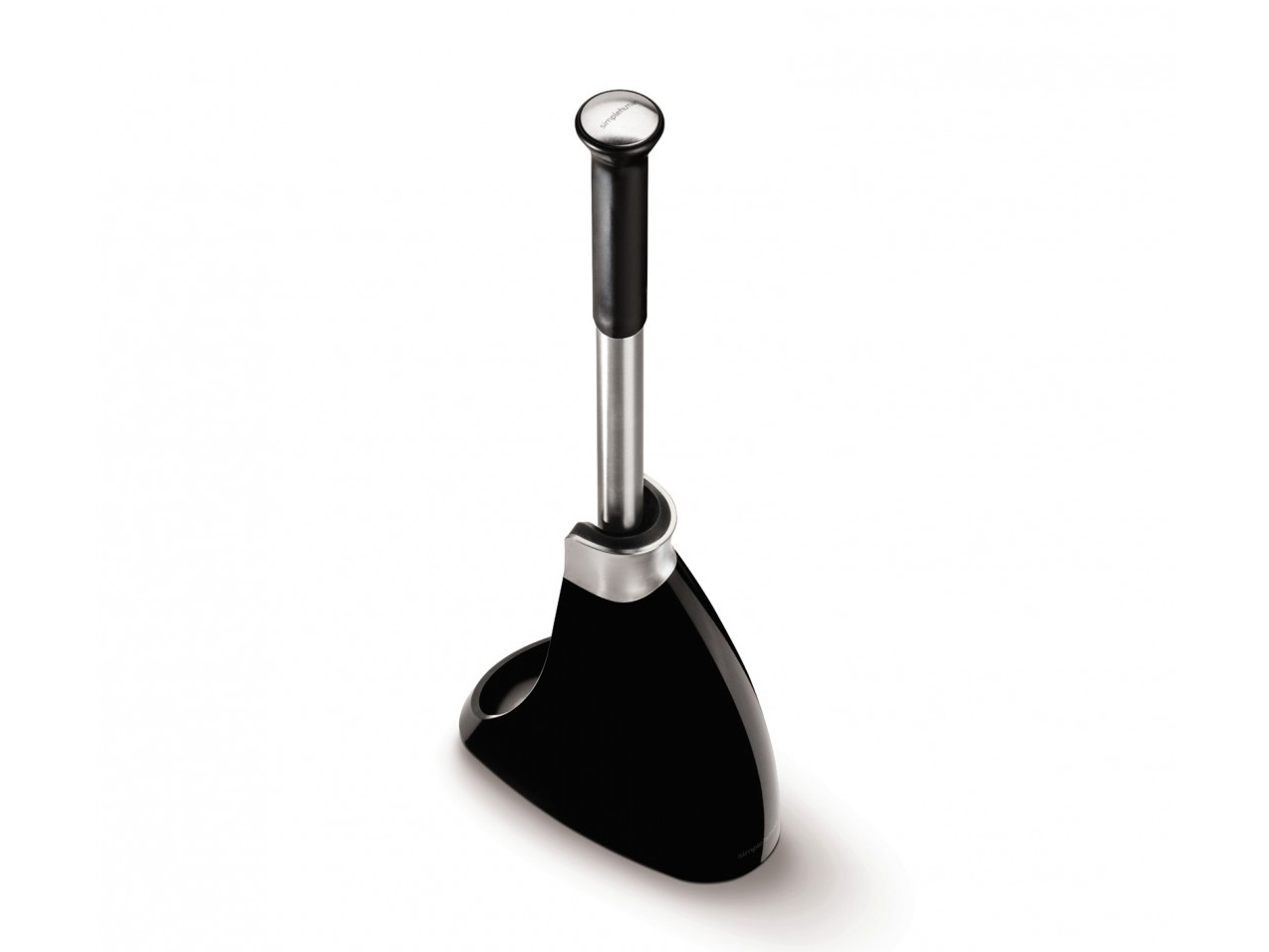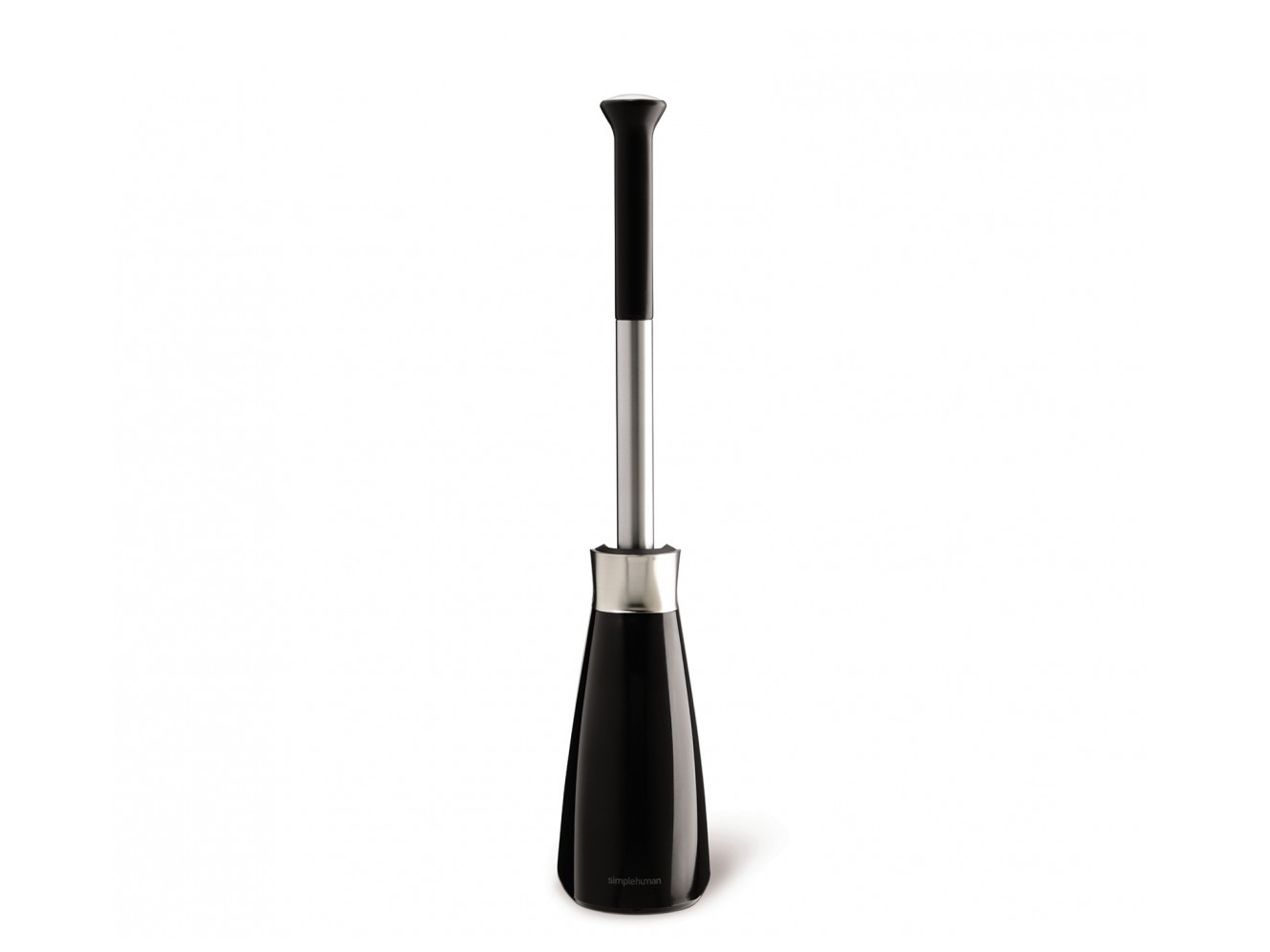 Smukły zaokrąglony półotwarty pojemnik wykonany z trwałego i łatwego w utrzymaniu w czystości tworzywa sztucznego, stabilnie utrzymuje szczotkę dzięki pierścieniowi z mocnym magnesem. Magnes przytrzymuje stalową część uchwyt szczotki na tyle mocno, że można ją podnieść i przenieść w raz z pojemnikiem w inne miejsce, unikając kapania wody na podłogę.