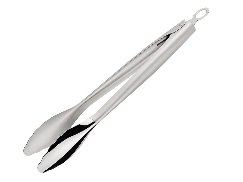 Oryginalne metalowe szczypce do grilla z wysokiej jakości stali. Narzędzie idealne sprawdzi się do przekładania i przewracania produktów na ruszcie, dzięki końcówkom o owalnym kształcie z profilowanymi krawędziami. Funkcjonalne szczypce posiada mechanizm blokujący pozwalający na łatwe przechowywanie. Rączka szczypiec zakończona jest niewielkim oczkiem do zawieszenia na haczyku.