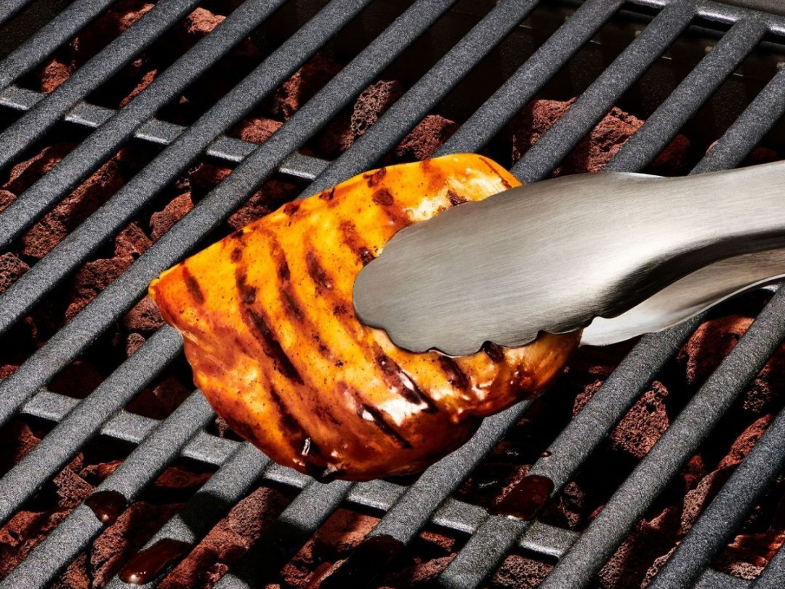 Oryginalne metalowe szczypce grillowe z łagodnie ząbkowanymi krawędziami zapewniającymi pewny chwyt podczas grillowania kiełbas, kaszanek, szaszłyków, drobiu i kawałków warzyw a także podczas marynowania potraw.