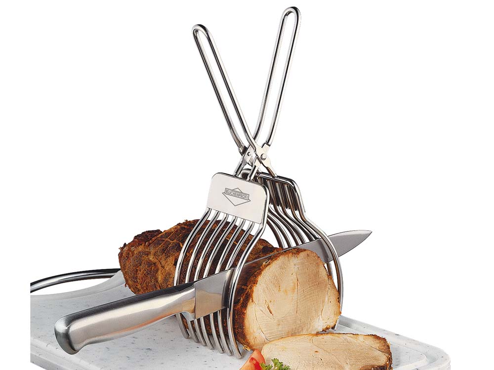Szczypce umożliwiają także równe porcjowanie pieczeni bez ryzyka skaleczenia się.