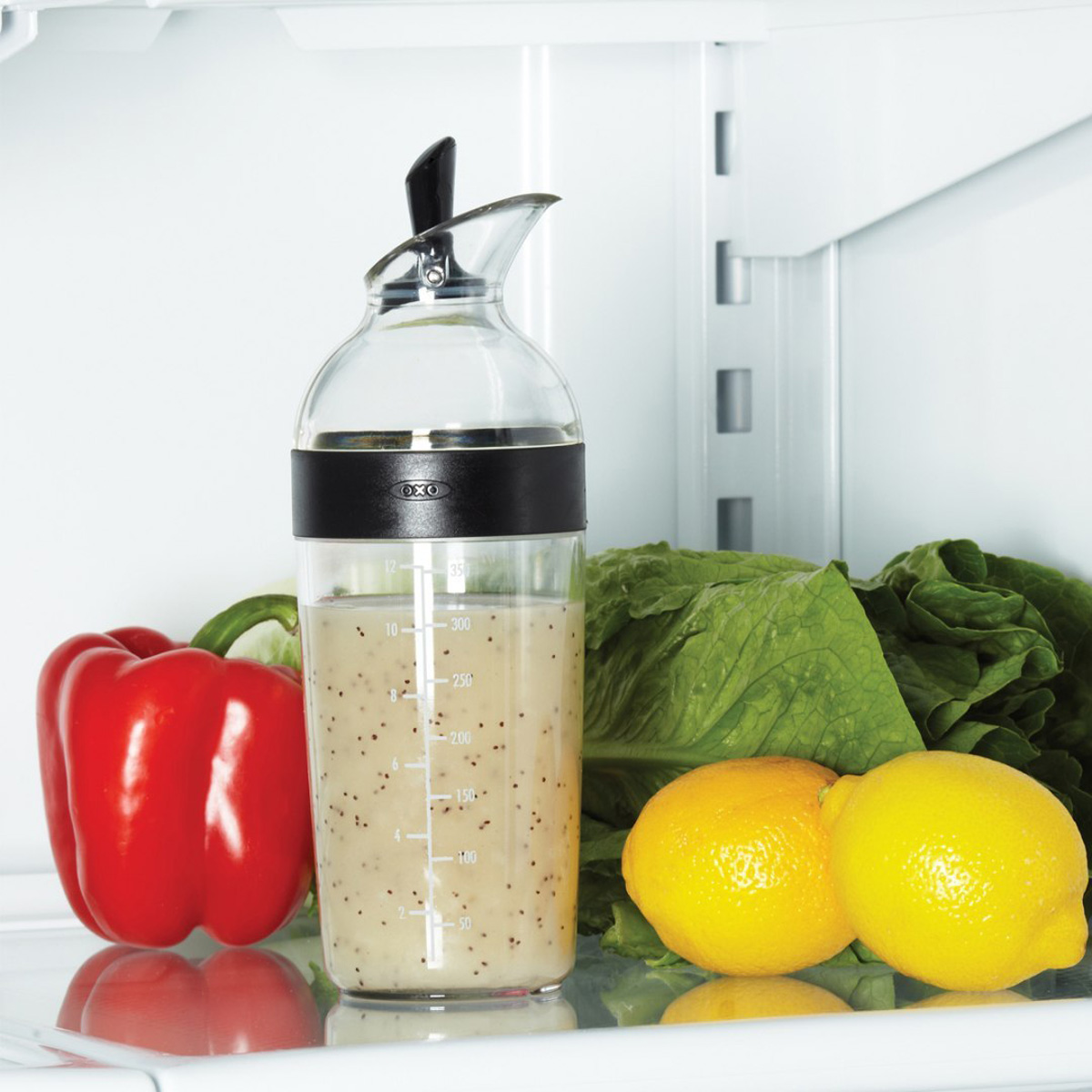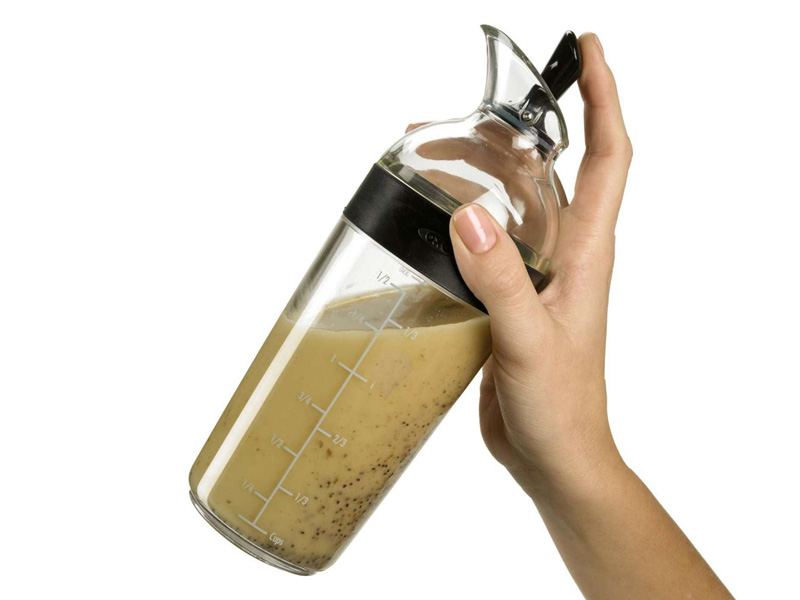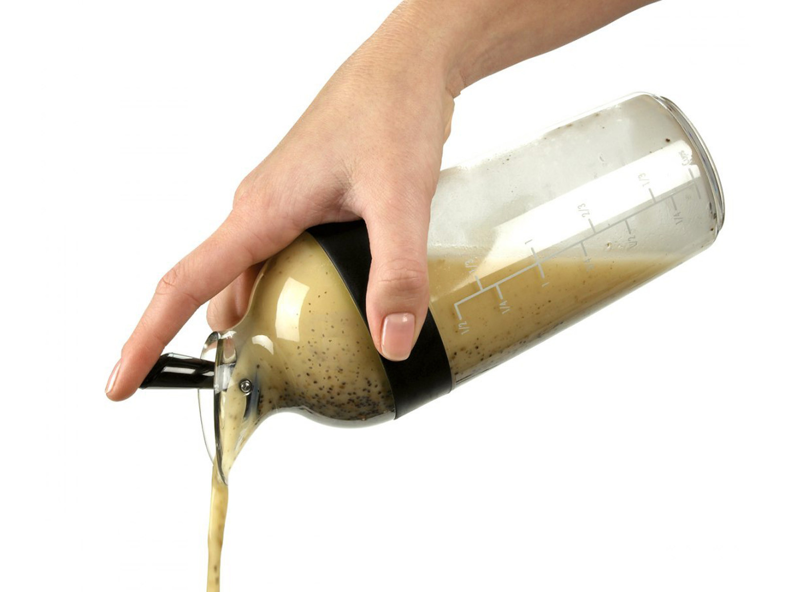 Praktyczny szejker do przygotowywania i dozowania sosów sałatkowych, dressingów i marynat.