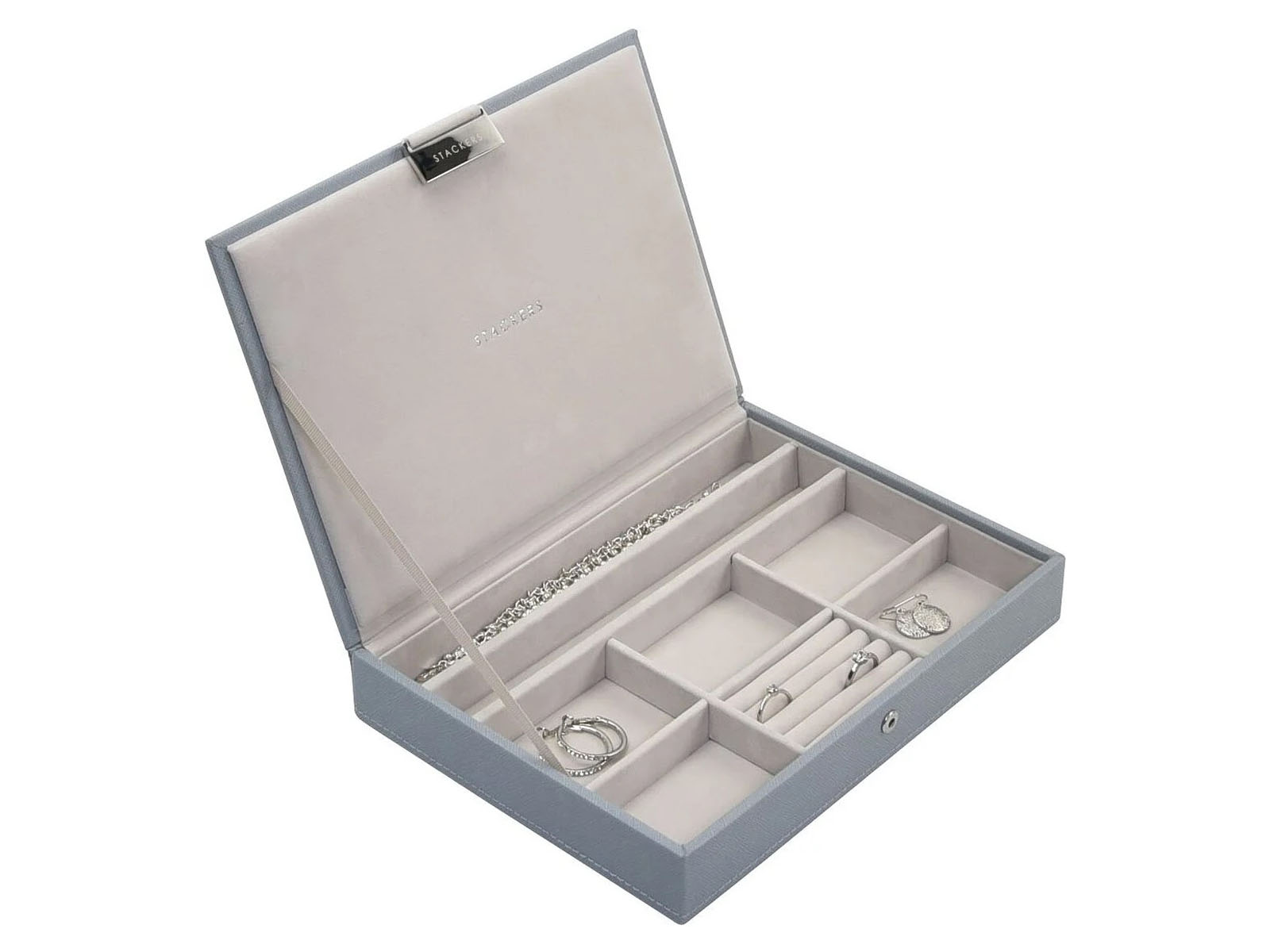 Szkatułka Stackers Classic to elegancka szkatułka idealna do przechowywania i zorganizowania podręcznej kolekcji biżuterii. Szkatułka posiada 8 przegródek do przechowywania każdego rodzaju biżuterii: bransoletek, naszyjników, pierścionków czy kolczyków.