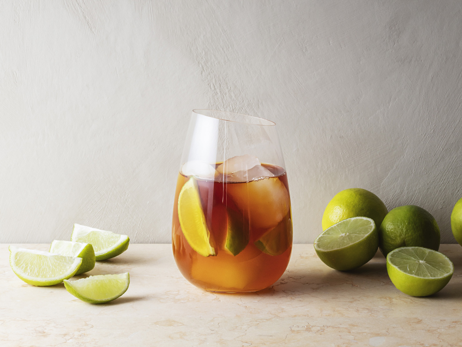Szklanka o pojemności 380 ml wykonana z bezbarwnego przezroczystego dmuchanego szkła z oryginalnym lekko ciętym pod kątem brzegiem.