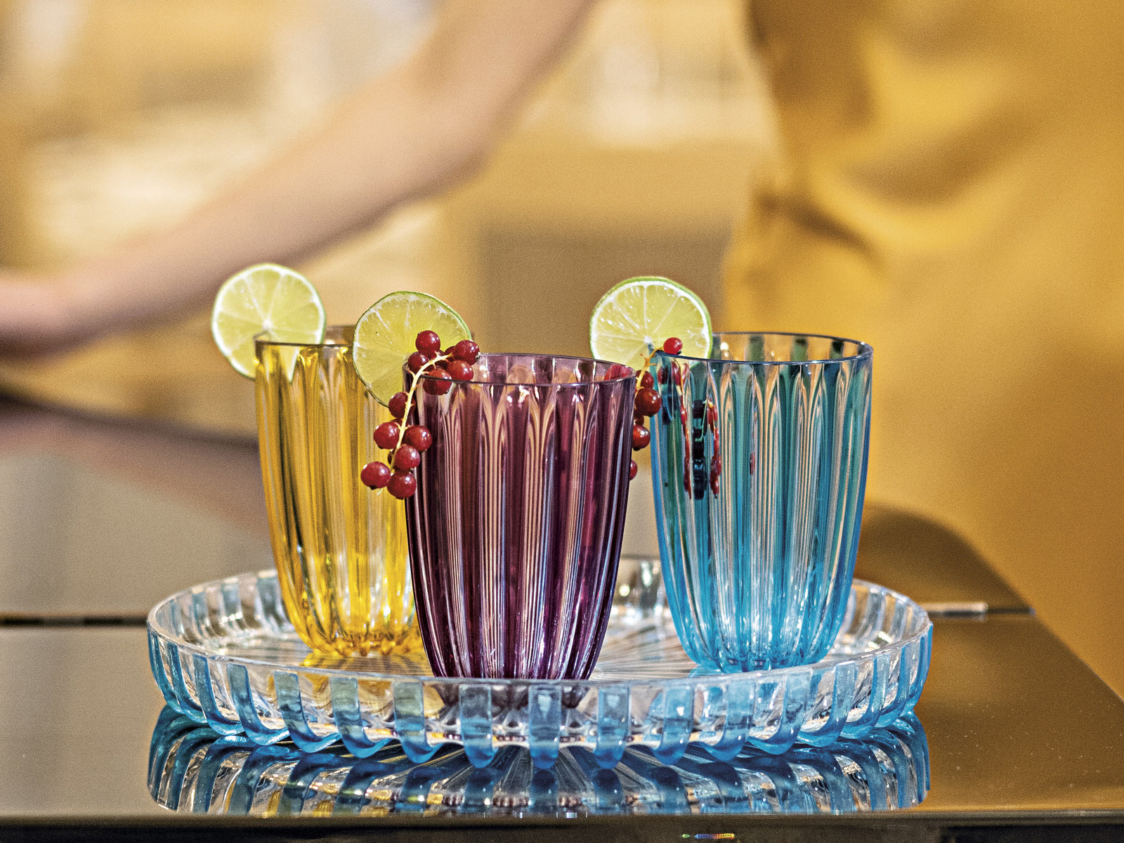 Zastawa stołowa , Szklanki do zimnych napojów , Letni posiłek w ogrodzie z Guzzini , Posiłek w ogrodzie i na tarasie