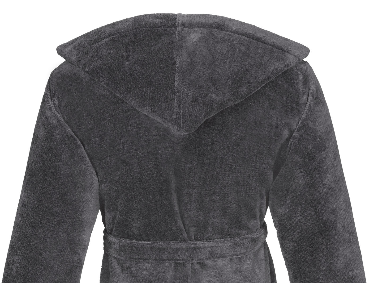 Bugatti Roberto to bardzo elegancki męski szlafrok frotte z kapturem. Jest niezwykle miękki i mięsisty w dotyku. Szlafrok posiada wygodny kaptur, pasek i kieszenie. Jest to szlafrok jednokolorowy, a delikatne welurowe wykończenie nadaje szlafrokowi subtelnego klasycznego charakteru.