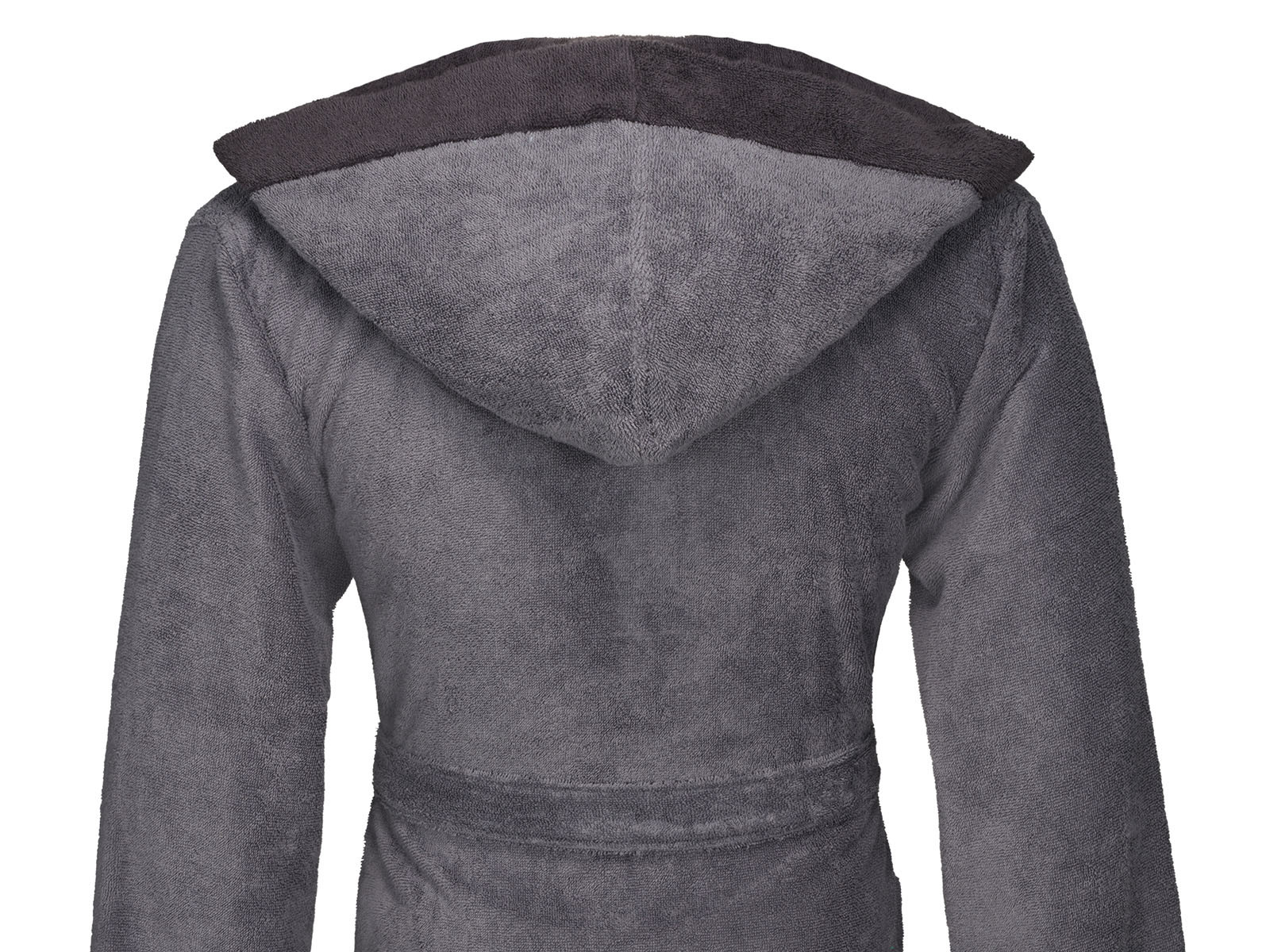 Bugatti Stefano to bardzo elegancki nowoczesny męski szlafrok frotte z kapturem. Jest niezwykle miękki i mięsisty w dotyku. Szlafrok posiada wygodny kaptur, pasek i kieszenie. Wykończony jest kontrastowym odcieniem podstawowego koloru, co przełamuje monotonię i nadaje szlafrokowi subtelnego charakteru.
