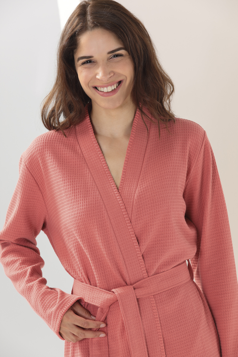Cawo Pique to kolekcja damskich oryginalnych i bardzo praktycznych, świetnych jakościowo szlafroków gofrowanych, zwanych również szlafrokami waflowymi. Jest to lekki, raczej dłuższy szlafrok wykonany w 100% z tkaniny bawełnianej o strukturze gofra.