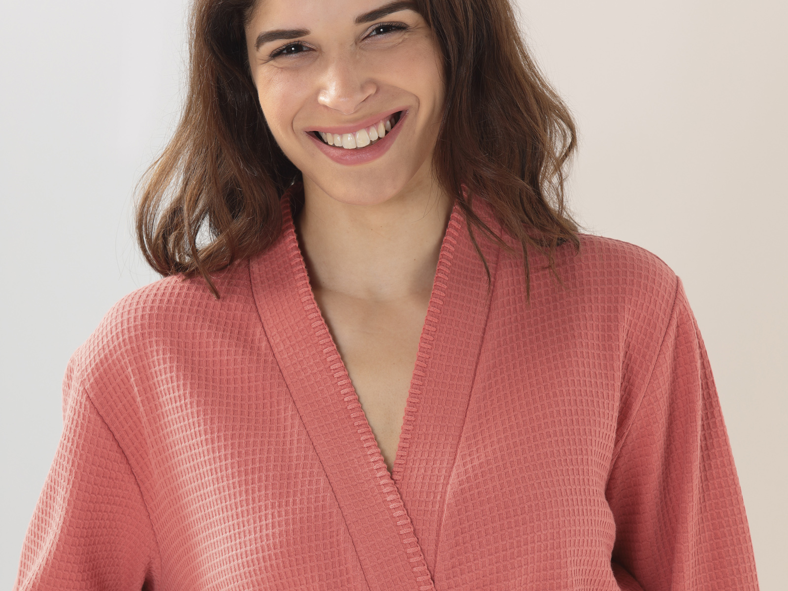 Cawo Pique to kolekcja damskich oryginalnych i bardzo praktycznych, świetnych jakościowo szlafroków gofrowanych, zwanych również szlafrokami waflowymi. Jest to lekki, raczej dłuższy szlafrok wykonany w 100% z tkaniny bawełnianej o strukturze gofra.
