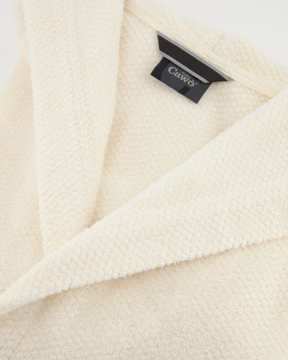 Cawo Pure to kolekcja damskich oryginalnych i bardzo praktycznych, świetnych jakościowo szlafroków frotte o wyjątkowej strukturze pętelek, tzw. strukturze perłowej. Jest to bardzo komfortowy, raczej dłuższy szlafrok wykonany w 100% z tkaniny bawełnianej.