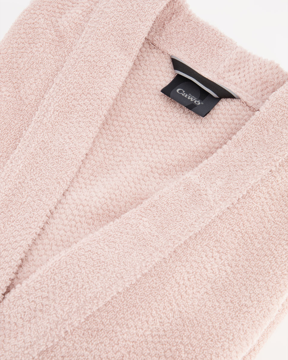 Cawo Pure to kolekcja damskich oryginalnych i bardzo praktycznych, świetnych jakościowo szlafroków frotte o wyjątkowej strukturze pętelek, tzw. strukturze perłowej. Jest to bardzo komfortowy, raczej dłuższy szlafrok wykonany w 100% z tkaniny bawełnianej.