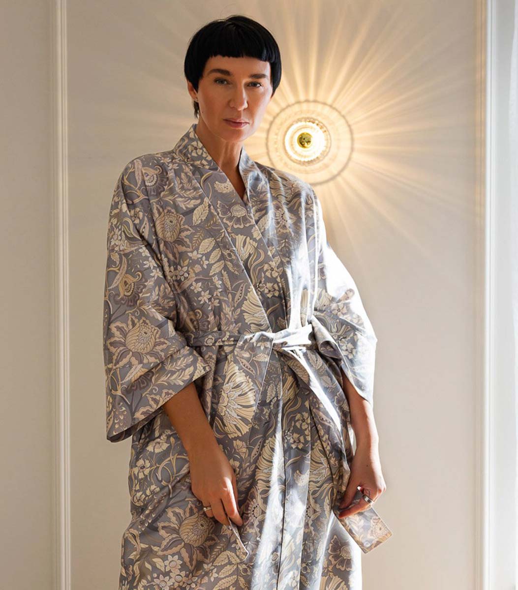 Szalfroki Decoflux Kimono to najwyższej jakości elegancki szlafrok satynowy wykonany w 100% z wyselekcjonowanej przędzy bawełny egipskiej. Tkanina jest bardzo bardzo miła, komfortowa trwała w użytkowaniu.
