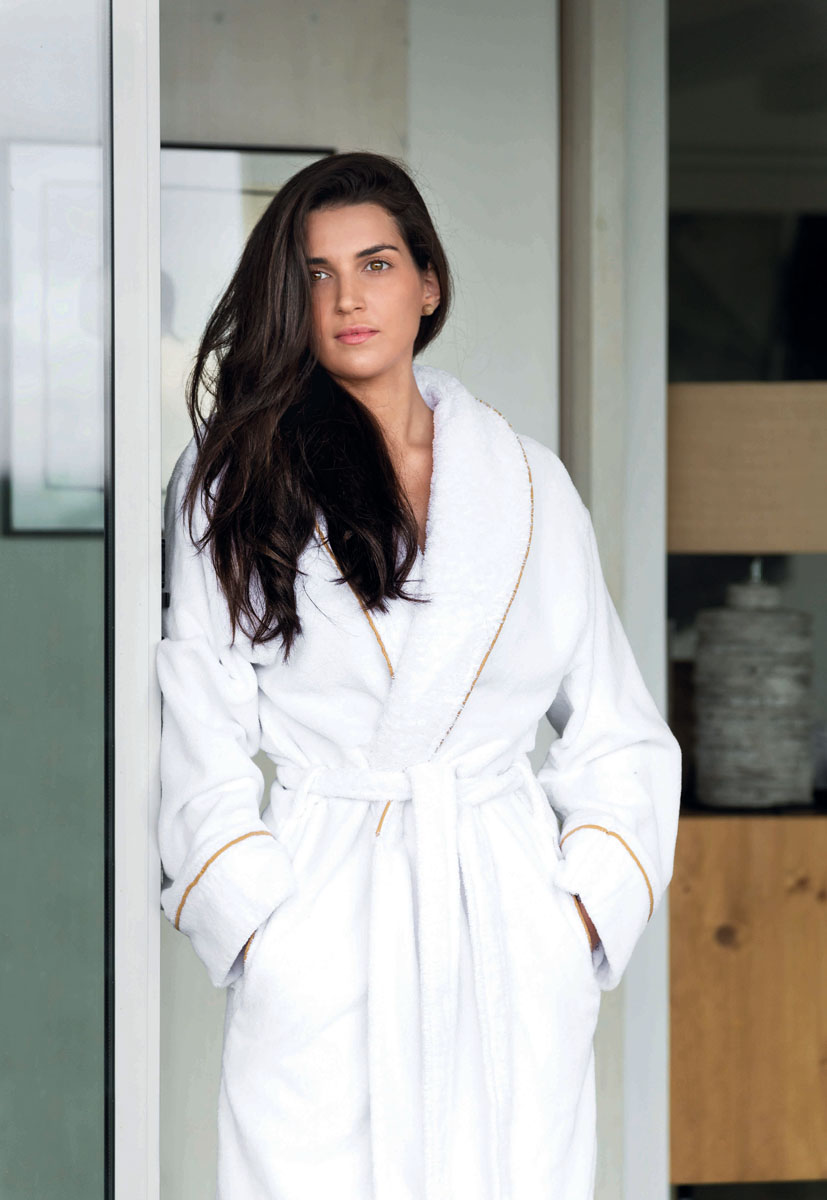 W przypadku szlafroków, w kolekcji Luxury Portobello zdobienia są uzyskane dzięki wszytej lamówce