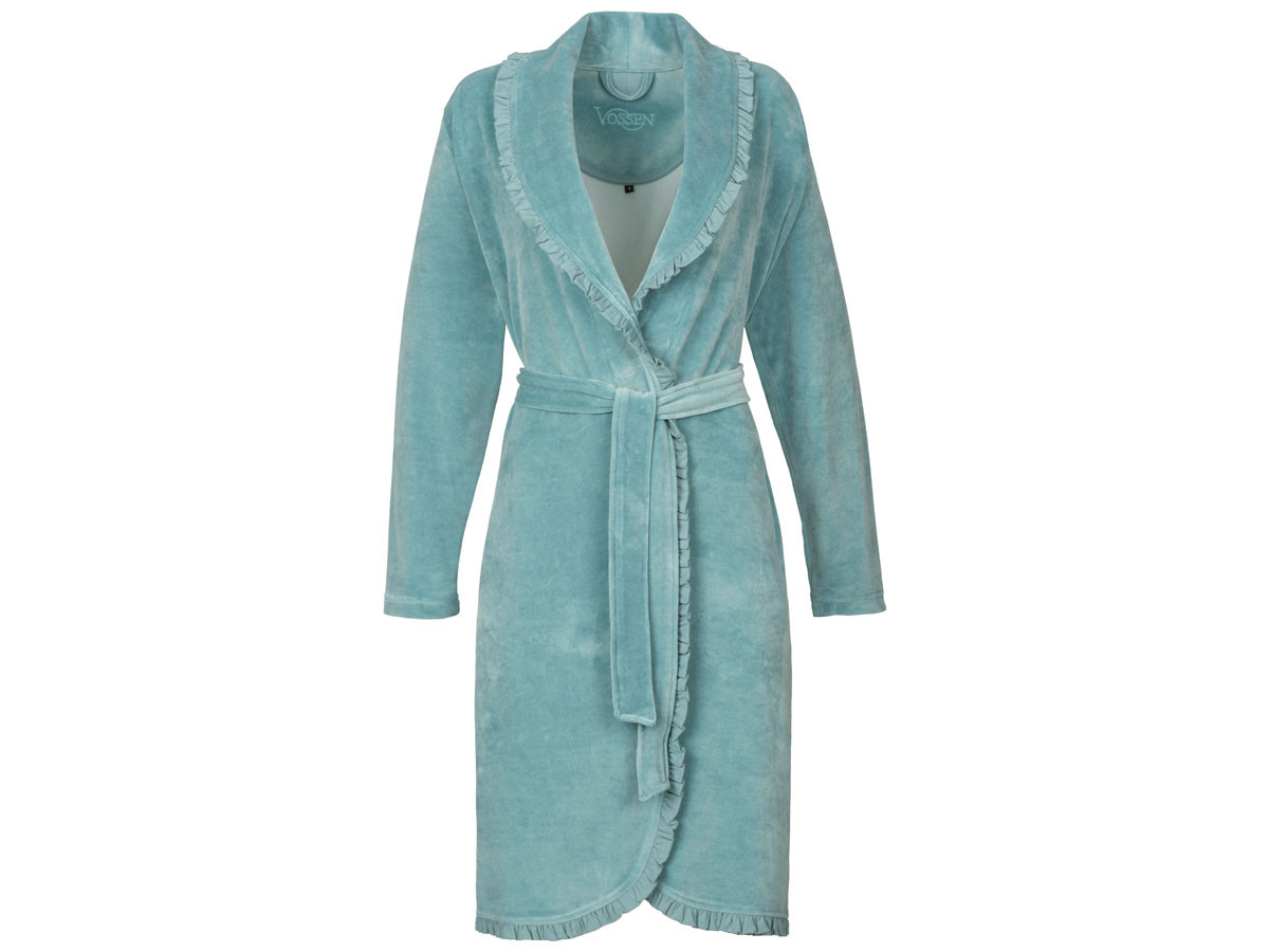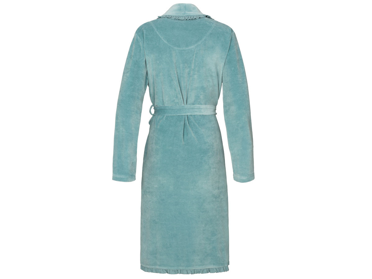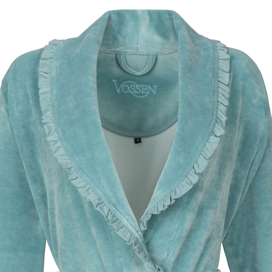 Szlafrok utrzymany jest w pastelowej lazurowej tonacji