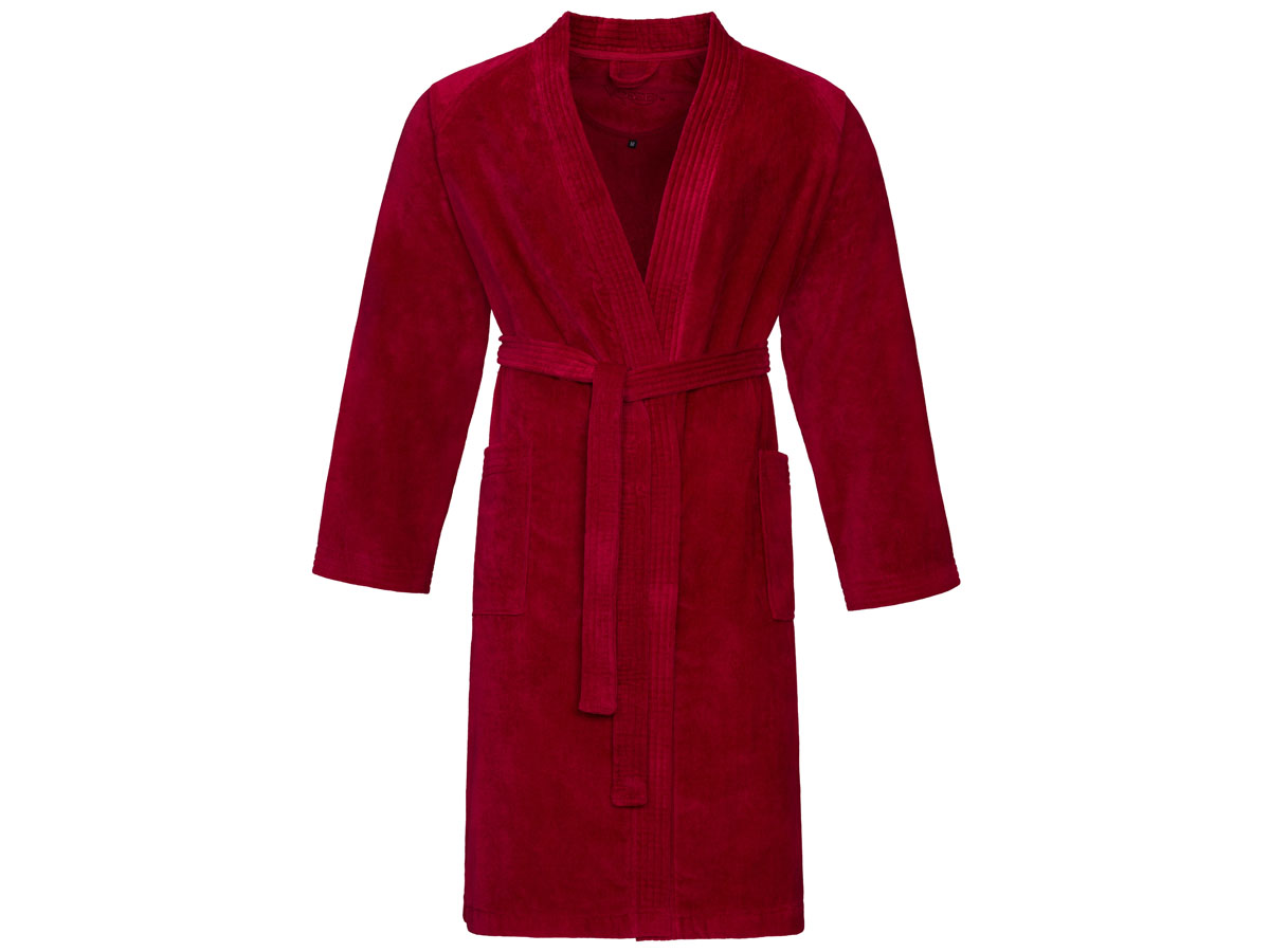 Od wewnętrznej strony jest to bawełna frotte, od zewnętrznej welur - cięta frotte. Szlafrok posiada pasek oraz zewnętrzne kieszenie