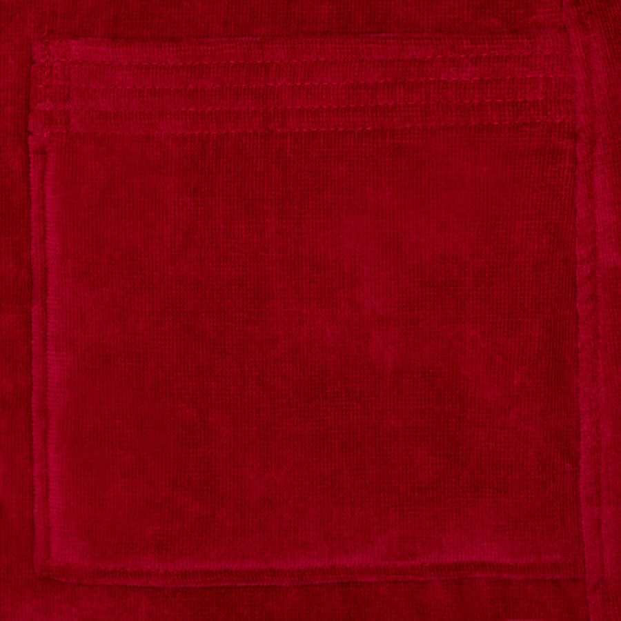 Od wewnętrznej strony jest to bawełna frotte, od zewnętrznej welur - cięta frotte. Szlafrok posiada pasek oraz zewnętrzne kieszenie