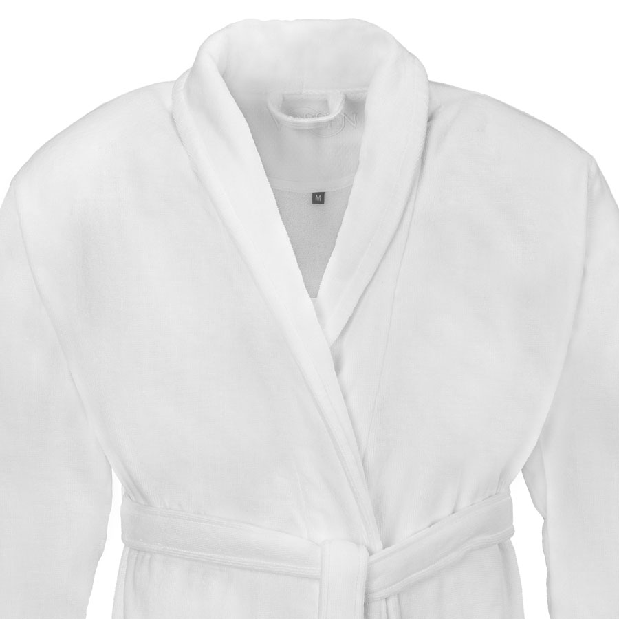 Szlafrok wykonany z jednostronnie ciętej frotty, dzięki czemu zewnętrzna strona szlafroka ma piękny delikatny połysk.