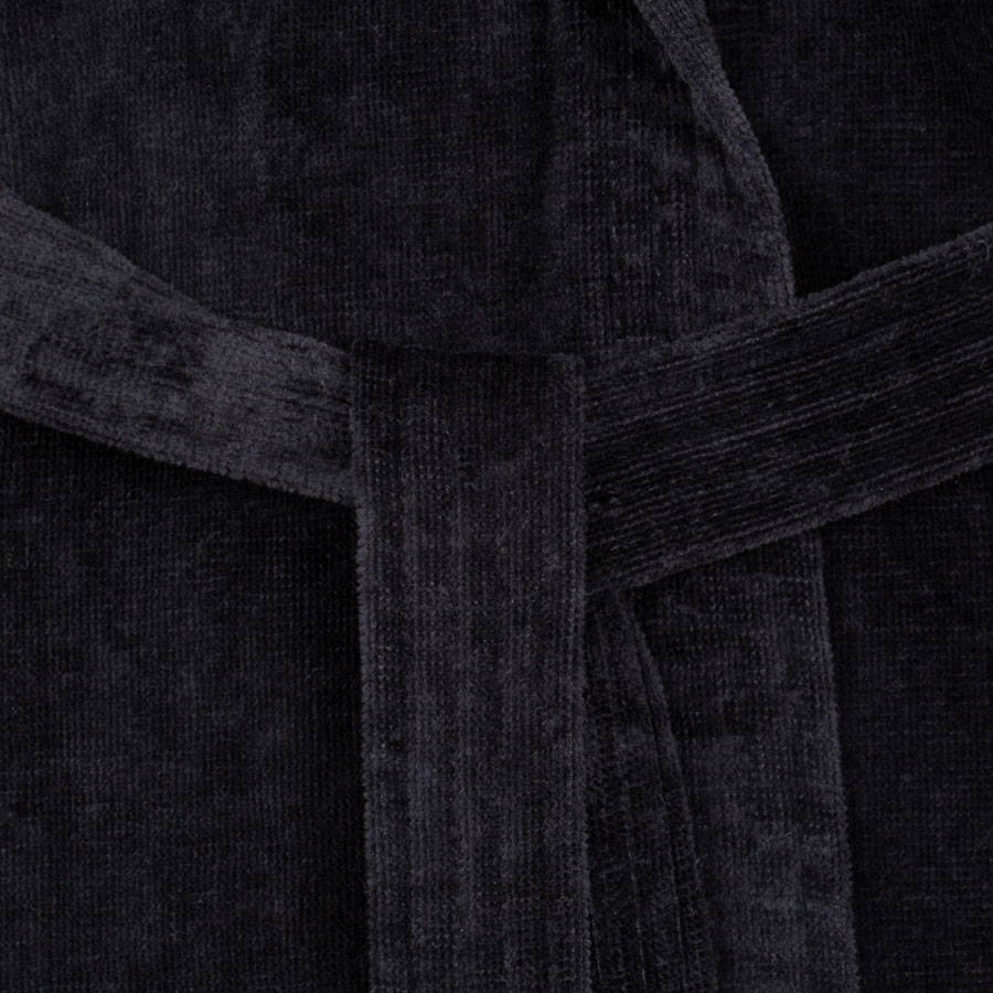Od wewnętrznej strony jest to bawełna frotte, od zewnętrznej welur - cięta frotte. Szlafrok posiada pasek oraz zewnętrzne kieszenie