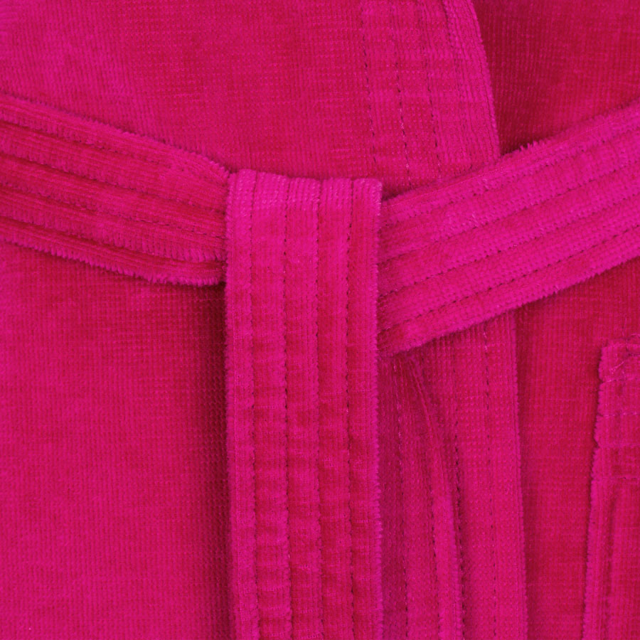 Od wewnętrznej strony jest to bawełna frotte, od zewnętrznej welur - cięta frotte. Szlafrok posiada pasek oraz zewnętrzne kieszenie
