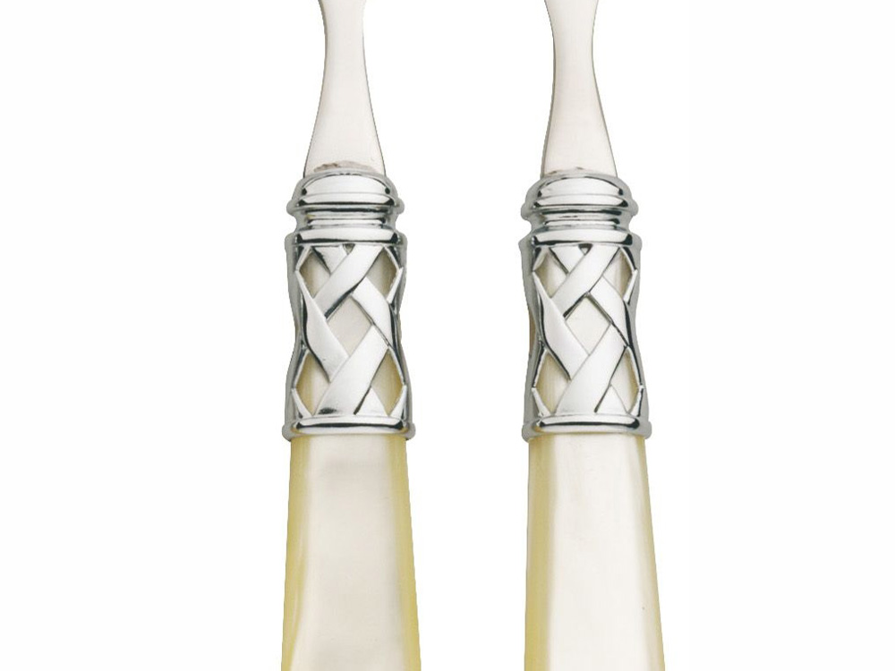 Sztućce wykonane z wysokiej jakości stali nierdzewnej z akrylowymi trzonkami w kolorze perłowej kości słoniowej.