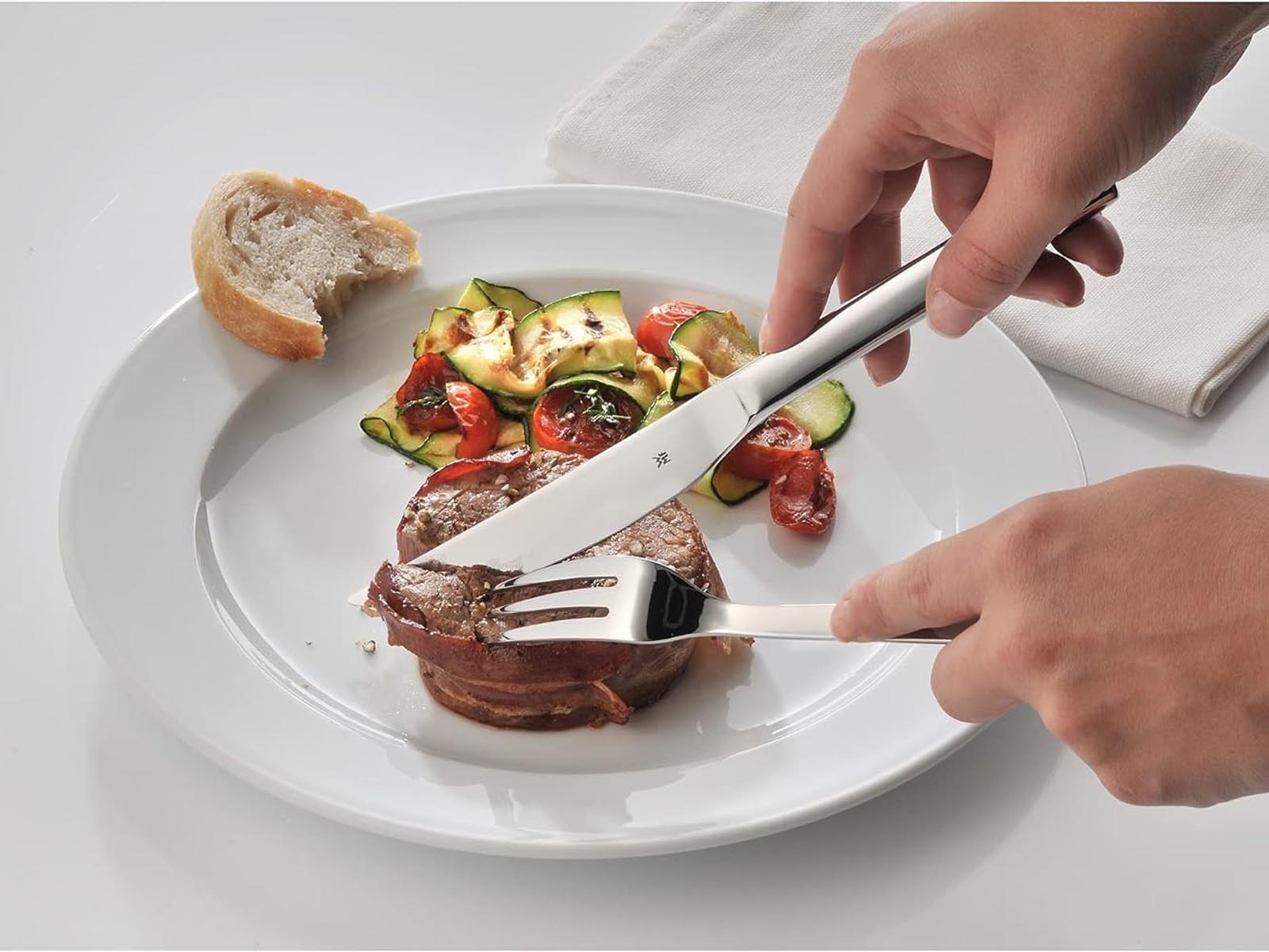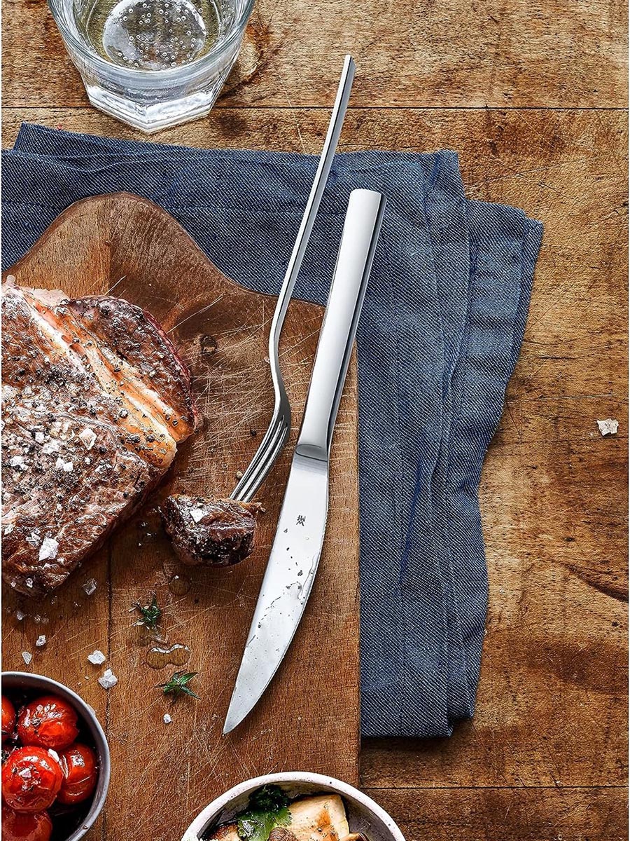 Sztućce wykonane są z odpornej na zarysowania i kwasy owocowe polerowanej stali nierdzewnej Cromargan® - widelce z długimi spiczastymi zębami, noże kute z jednego kawałka stali, a następnie hartowane, ostrza łatwo przecinają grillowane potrawy z chrupiącą skórką i gładko przesuwają się nawet po grubym mięsie.