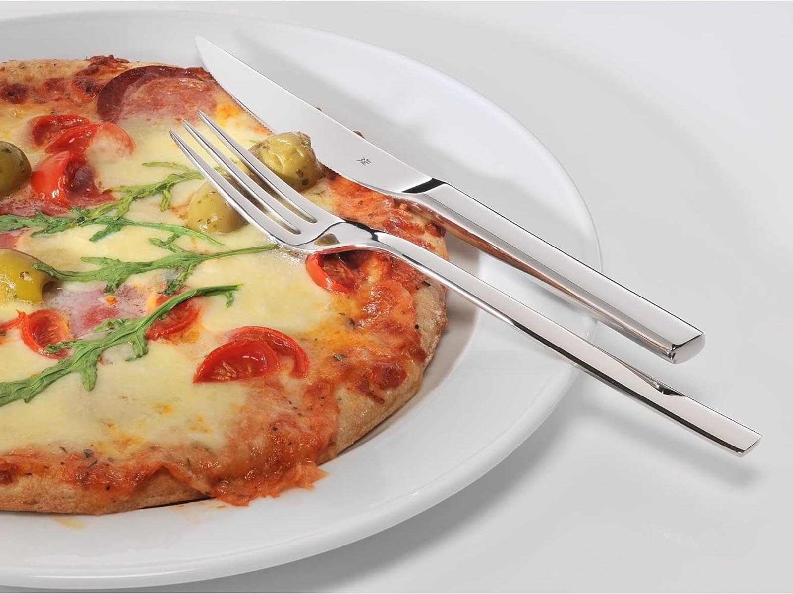 W zestawie znajduje się: 6 widelców i 6 delikatnie ząbkowanych noży idealnych do krojenia mięsa i pizzy.