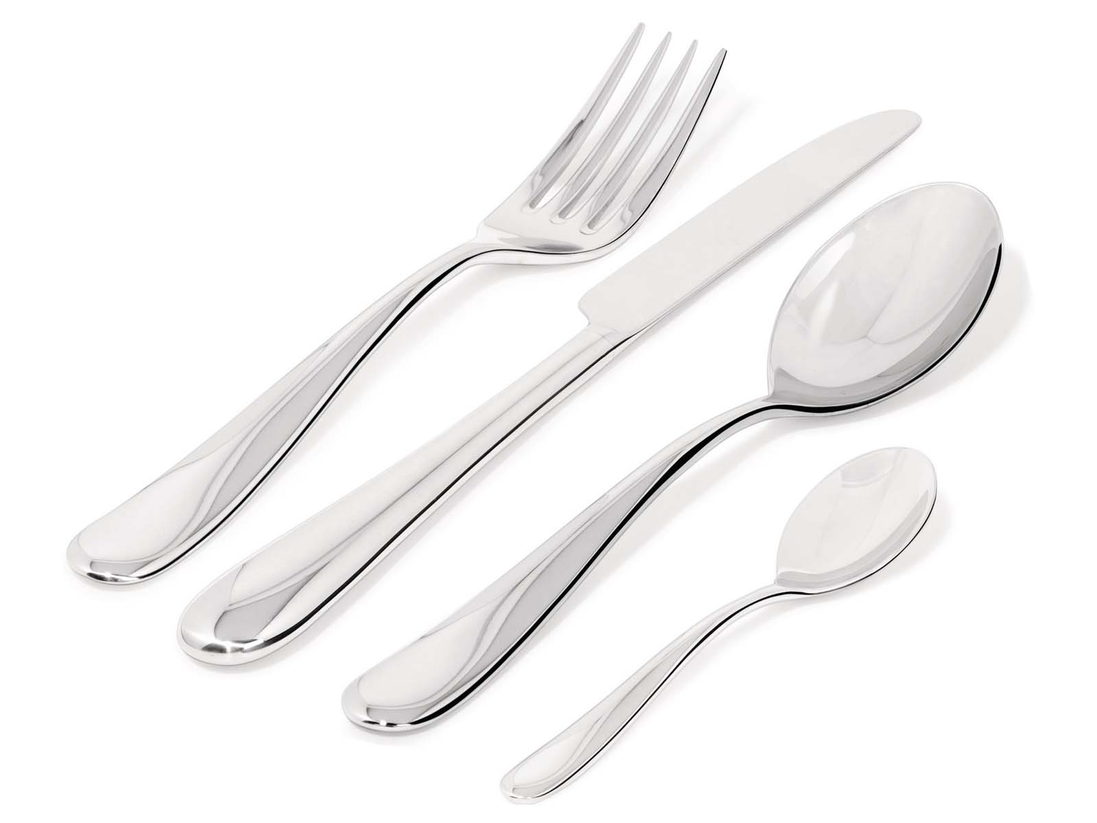 Alessi Nuovo Milano to kolekcja eleganckich sztućców stołowych dla 6 osób złożony z 24-elementów. Sztućce mają bardzo prostą, nowoczesną lekką linię i nie posiadają żadnych ozdób. Jedyną cechą charakterystyczną są zaokrąglone krawędzie, które przywodzą na myśl wygładzone przez wodę kamienie. Sztućce wykonane są z wysokiej jakości polerowanej na wysoki połysk stali nierdzewnej.