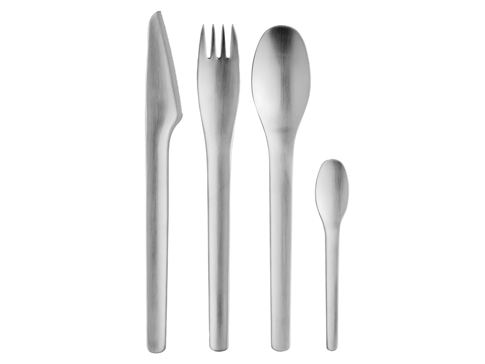 Sztućce wykonane ze stali nierdzewnej w wykończeniu satynowym o eleganckim minimalistycznym designie Erika Magnussena.