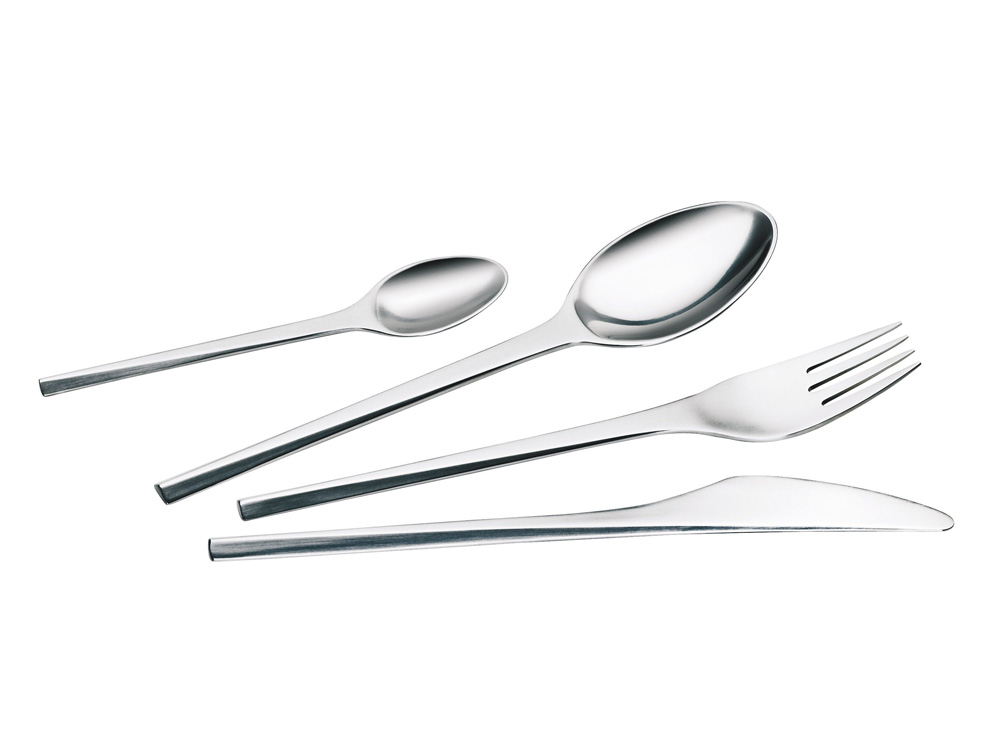 Sztućce wykonane ze stali nierdzewnej w wykończeniu satynowym o ponadczasowym prostym designie.