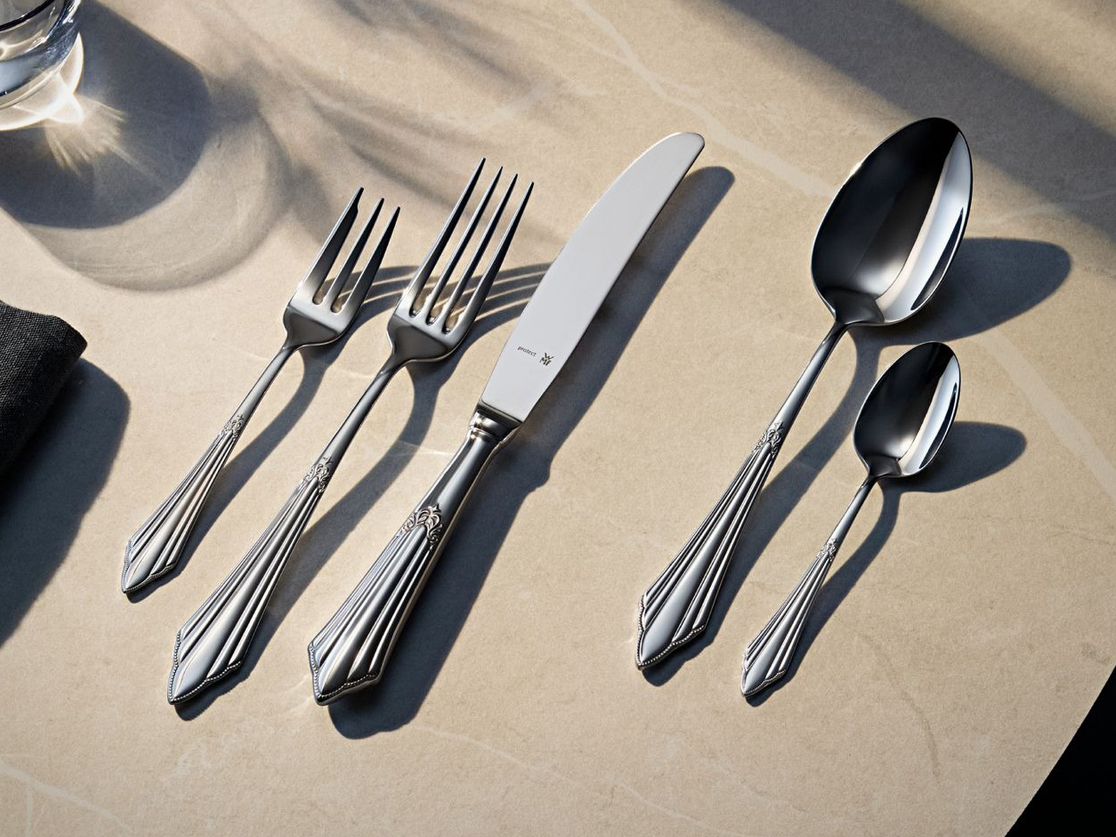 Sztućce WMF poddane opatentowanemu procesowi utwardzania Cromargan Protect® są wyjątkowo odporne na oznaki zużycia - dzięki temu powierzchnie polerowane pozostają błyszczące, a powierzchnie matowe pozostają w dobrej kondycji.